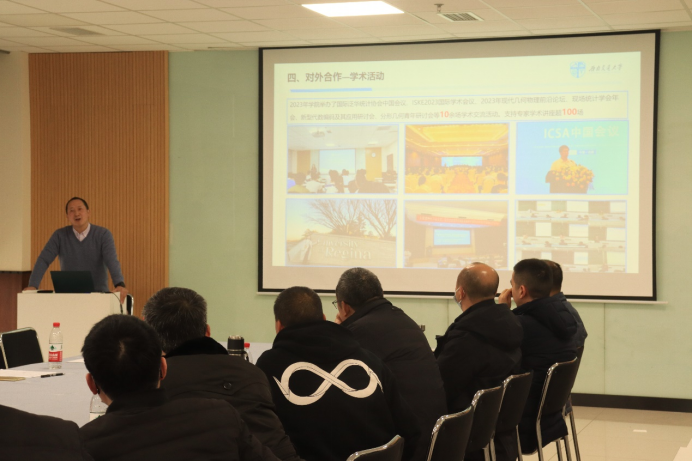 会议第二项,杨晗院长对2023年2138cc太阳集团工作进行报告。此次工作报告以“凝心聚力再出发,同心逐梦谱新篇”为主题,重点介绍了2138cc太阳集团在2023年取得的突出成绩,并对2024年学院的各项工作进行展望。杨院长表示,2023年数学一级学科博士点建设审核评估通过,数学博士后流动站获批建设,学院的各项事业蒸蒸日上;2138cc太阳集团的三个专业都已达到国家一流建设水平,并在2023年共建教育部署数学系列课程虚拟教研室,教师教学和学生学科竞赛取得了重大突破,人才培养成效显著;今年共获批国家自然科学基金重点项目1项、面上项目4项和青年基金2项,科学研究硕果累累;2023年学院举办了10余场大型学术交流活动,学术活动颇有成效;成功举办了第十四届数学文化节,并深入开展社会实践和班风学风建设,学生工作方兴未艾。最后,杨院长介绍了2024年工作要点,为学院的未来发展锚定了新目标。