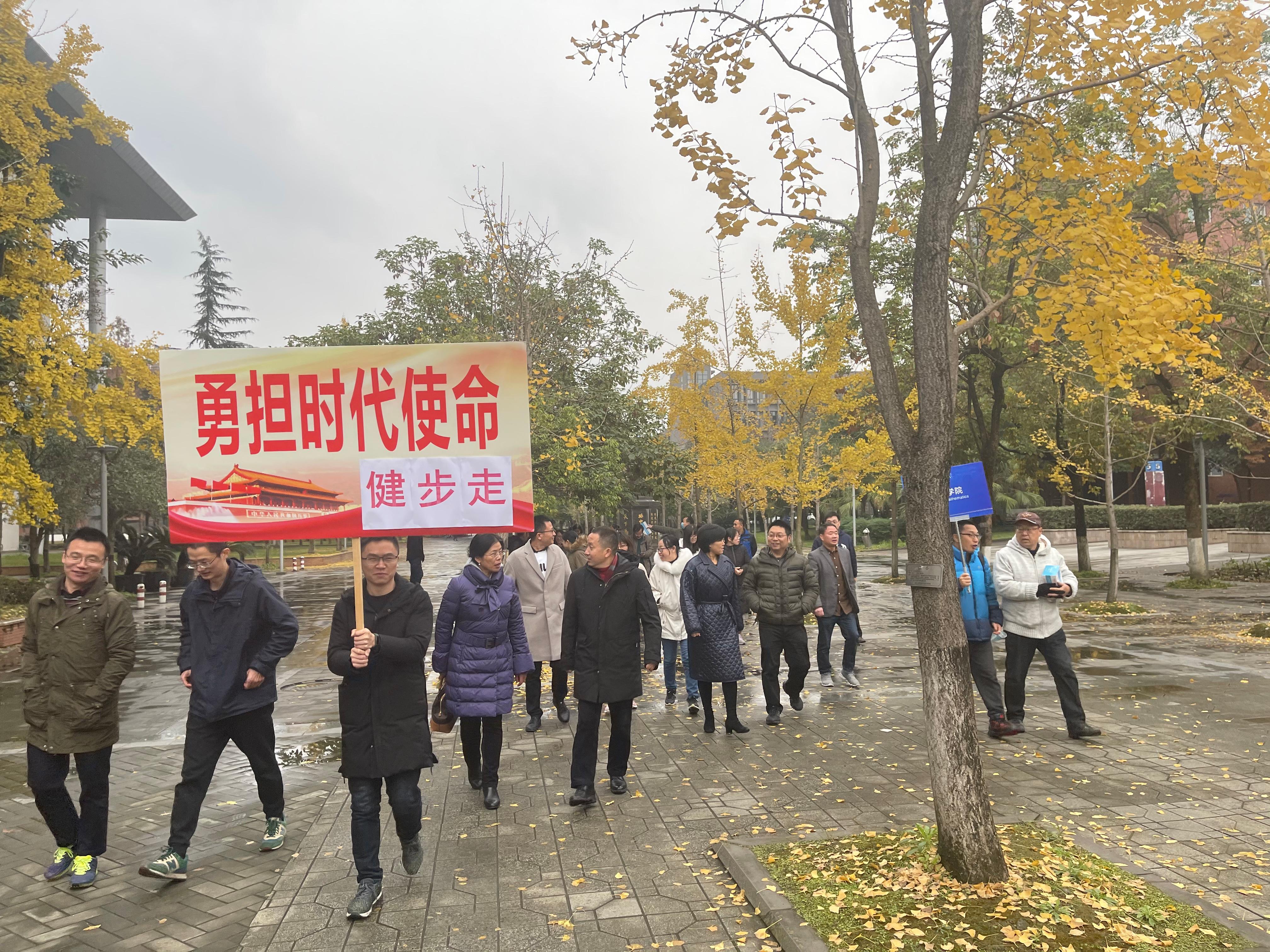启动仪式上,徐革书记做了现场动员,号召大家克服眼前的困难,保持高度警惕,加强锻炼,配合国家学校,做好疫情防御工作。杨晗常务副院长一声令下,教师们开展了围绕校园的健步走活动。
