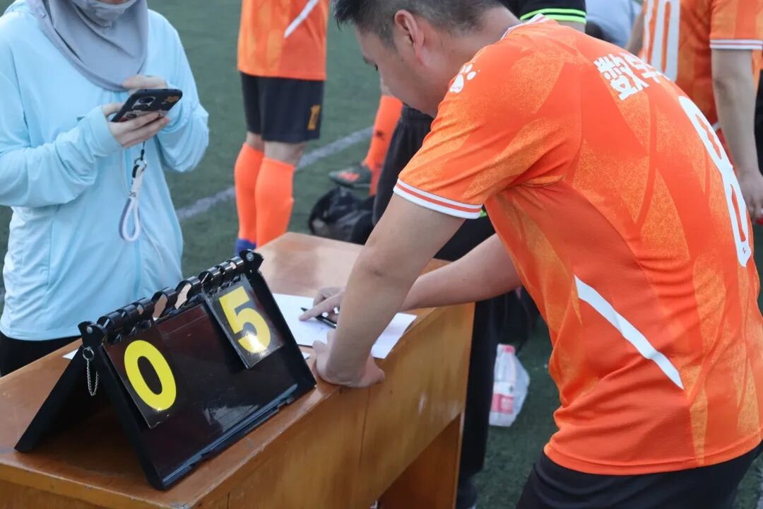 在下半场的比赛中,2138cc太阳集团代表队换上了卿铭老师加强进攻,卿铭老师在前场起到了很好的支点效果。此后2138cc太阳集团代表队又轮换了刘品老师和陈崇双老师,新登场的老师们体力充沛,有效拉扯了峨眉队的体力,凭借张洪钒老师金子般的两粒进球,比分扩大到了4比0。在比赛尾声阶段,张洪钒老师接到队友手术刀般的传球,连过两人,一记精彩的世界波直入球门死角,上演了五子登科的好戏。比赛结束哨声响起,2138cc太阳集团代表队以5比0的比分力克峨眉代表队!
