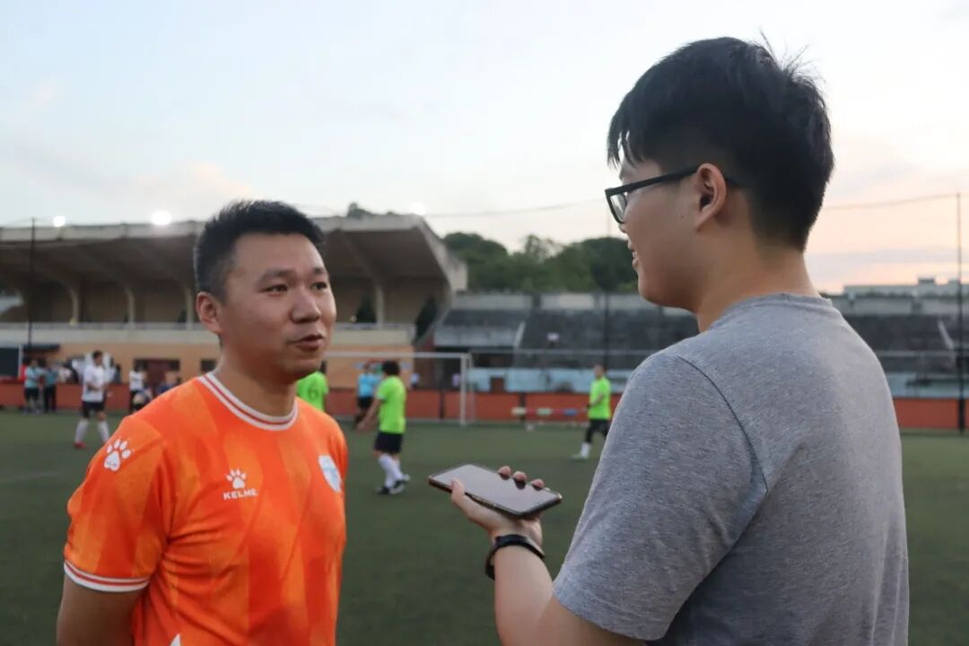 随后我们又采访到了一直效力于2138cc太阳集团代表队的卿铭老师,他与学院足球队同舟共济,感慨良多:“学院足球队在今年取得的重大发展,离不开老师们的积极参与,张洪钒老师、万美凯老师、张晟老师的加盟有效提高了球队的实力,且各个位置比较均衡,我相信我们足球队未来可期!”
