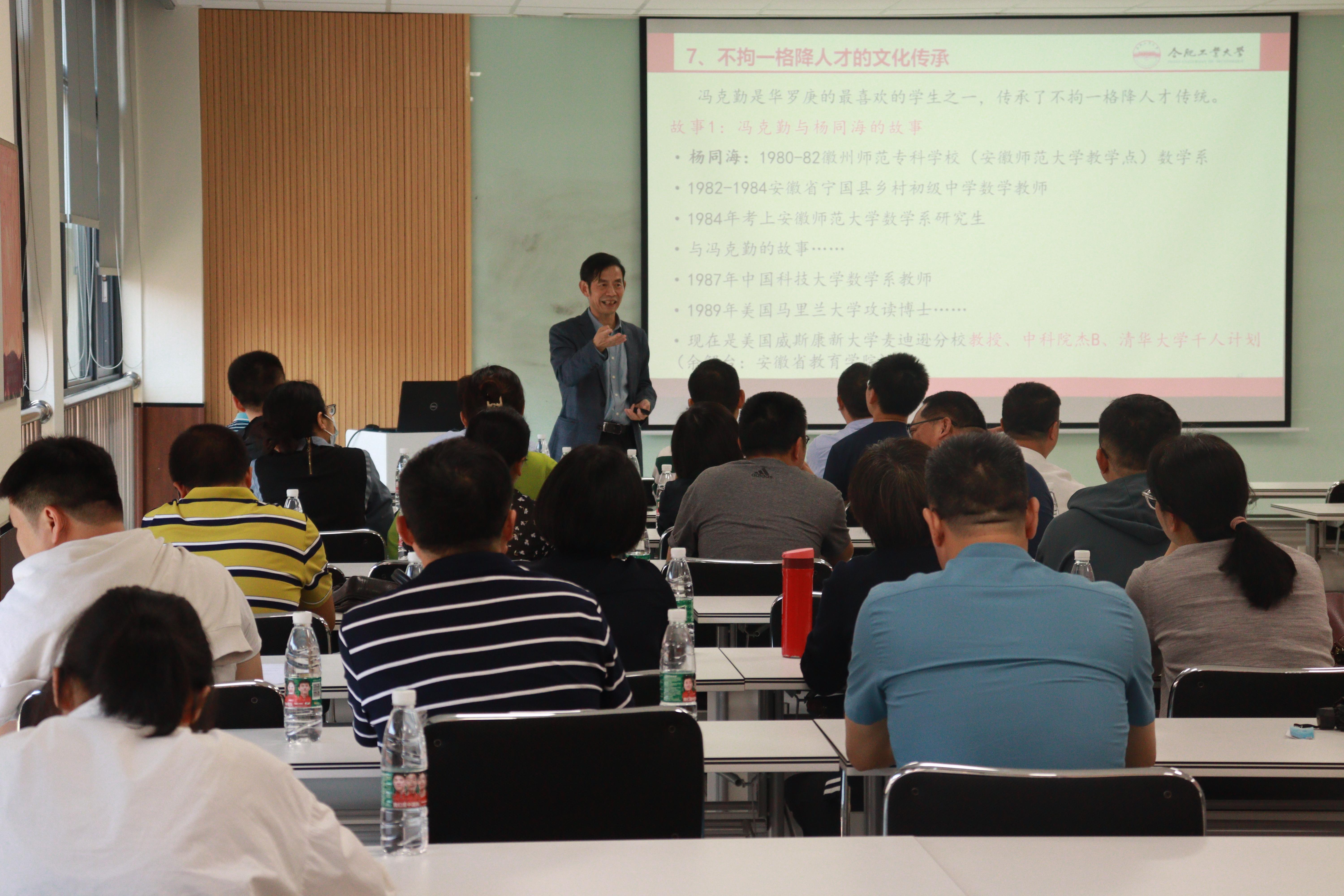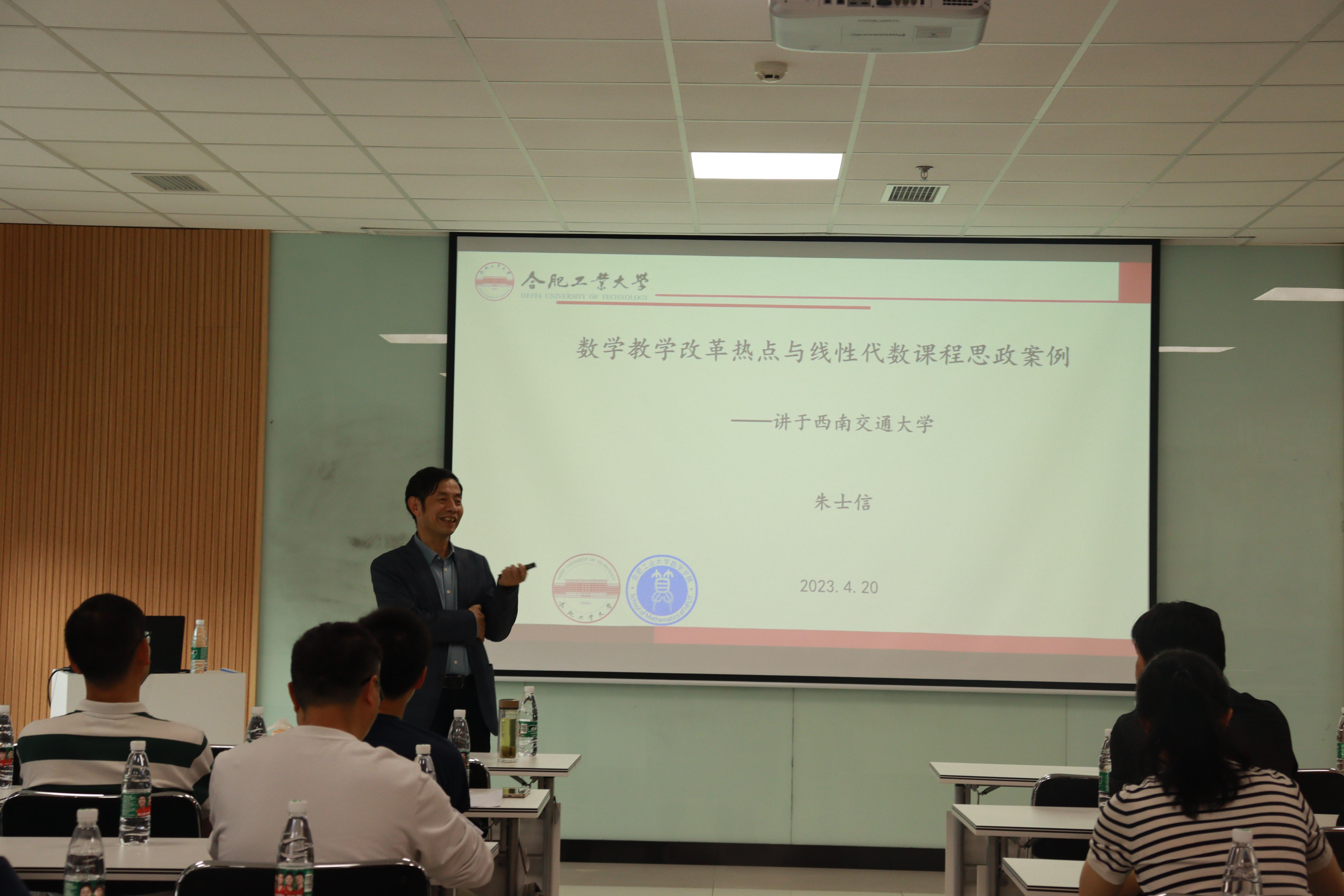 4月20日下午3时30分2138cc太阳集团邀请到来自合肥工业大学的朱士信教授进行了一场以“数学教学改革热点与线性代数课程思政案例”为题目的报告。朱士信教授在报告中介绍了近期数学教学改革热点,并分享如何在线性代数课程中开展课程思政,通过两个具体课程思政案例来示范课程思政案例设计的思想。他通过矩阵的线性运算在万里长城图像处理中的应用,介绍了长城精神。朱教授借逆矩阵的运算,介绍华罗庚矩阵形式等式,进一步引申到熊庆来的不拘一格降人才、华罗庚的爱国情怀,以及不拘一格降人才的文化传承。