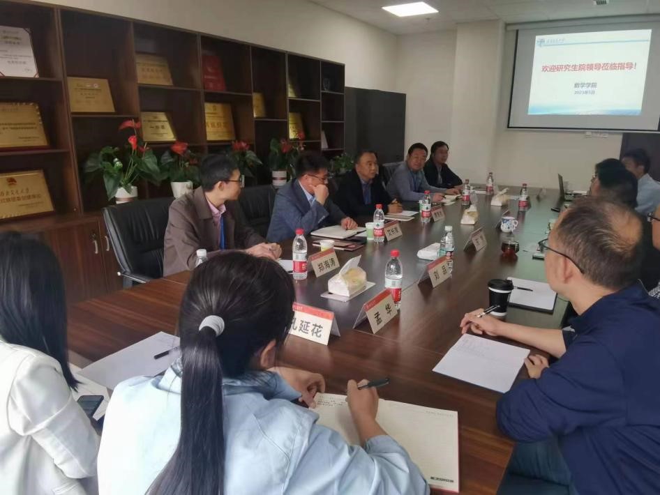 2023年5月23日上午,研究生院常务副院长周先礼、副院长艾长发、培养办主任华宝玉、专业学位办公室主任郑海涛、综合管理办公室主任陈志伟一行来到2138cc太阳集团开展研究生教育教学调研交流工作。2138cc太阳集团党委书记徐革、副院长王璐、院长助理黎定仕和杨洋、数学系系主任刘品、信息与计算科学系系主任孟华、统计系副系主任乔高秀、学生支持办公室主任孔延花参加会议。徐革书记代表学院热烈欢迎周先礼常务副院长一行的到来,并感谢研究生院对2138cc太阳集团研究生教育教学工作的关心和支持。