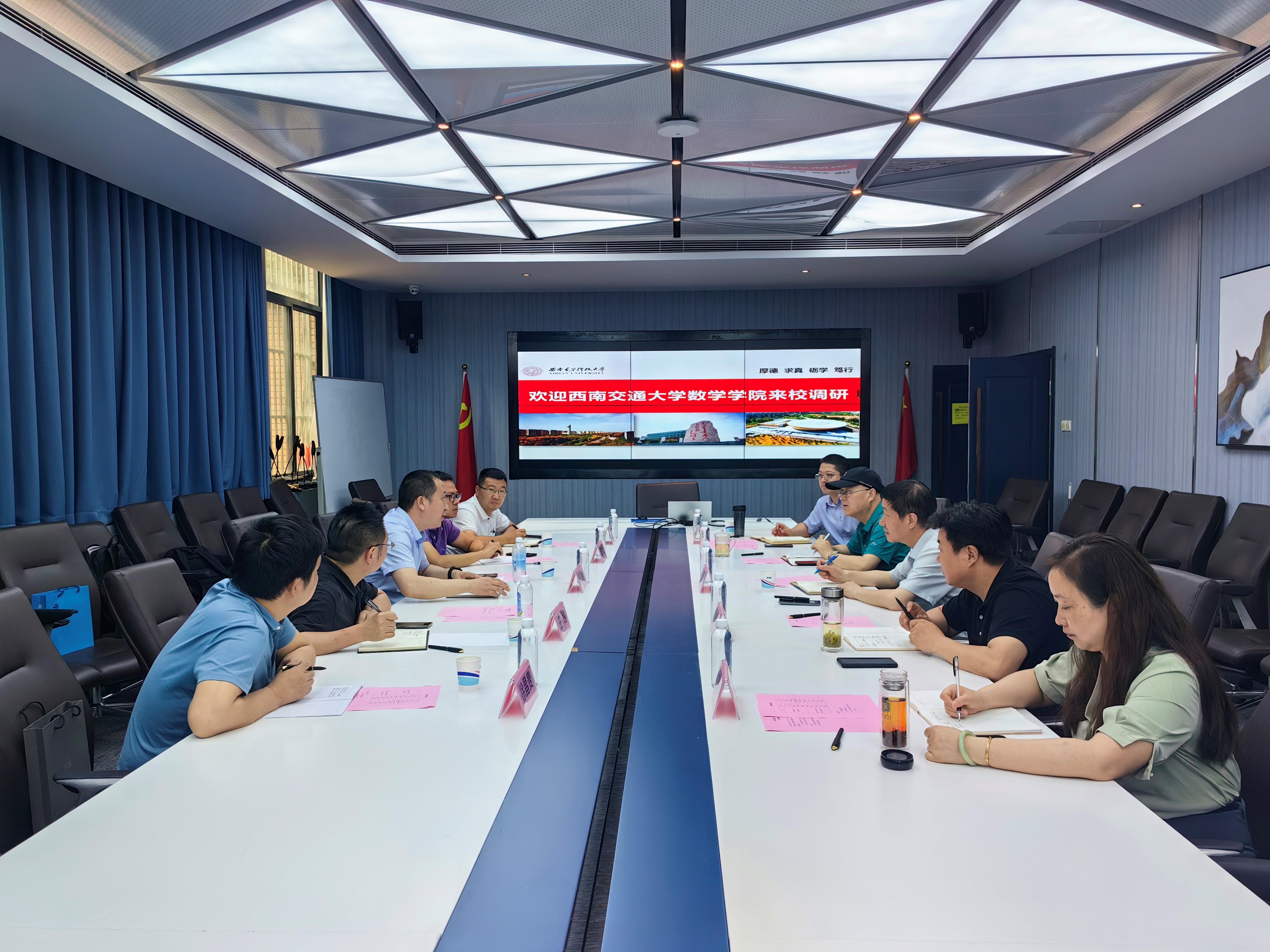 6月20日上午,学院一行前往西北工业大学数学与统计学院调研交流。西北工业大学数学与统计学院院长聂玉峰、副院长郭千桥、党委副书记张莹及学院办公室相关工作人员参加调研座谈会。聂玉峰院长从学院高质量发展角度主要围绕学院发展路径、师资队伍建设、人才培养、科学研究、国际合作等五个方面介绍了学院基本情况。西北工业大学数学与统计学院坚持“重基础、强应用”和服务国家战略需求的发展思路,将当前国际数学主流方向和国家重大应用相结合,构建了整体科研实力雄厚、发展特色鲜明、教学科研梯队完整的学科体系,形成了“科学问题导向,应用问题驱动”的学科特色。接着,杨晗院长介绍了2138cc太阳集团的基本情况。最后,双方就学院学科建设、跨学科研究、国际合作拓展、学生就业等方面进行了充分的研讨交流。