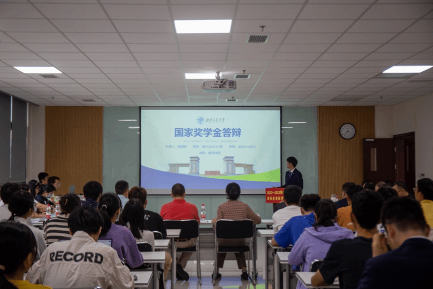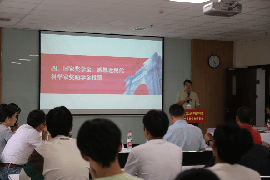 本次评审会分为答辩和评审两个环节,共评选国家奖学金、国家励志奖学金、感恩近现代科学家奖学金、感恩近现代科学家助学金四个奖项。答辩开始前,周义杰老师介绍了评选规则和评审小组成员。答辩候选人经过学生自我申请、学生工作组审核资格后产生。