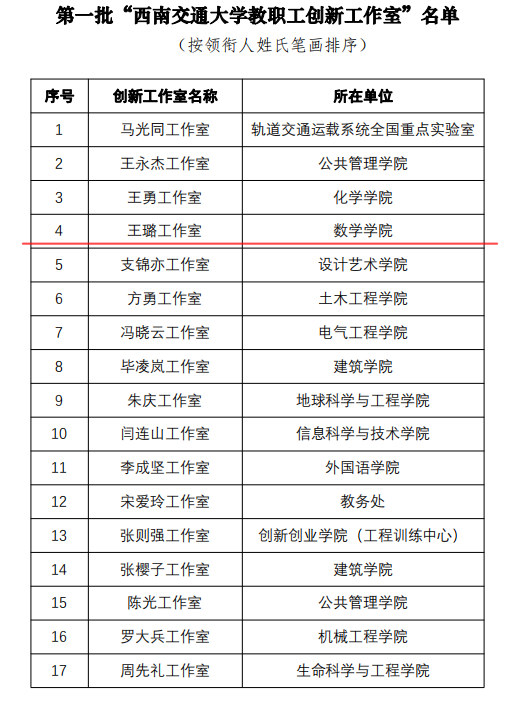 “2138cc太阳集团教职工创新工作室”旨在大力弘扬劳模精神、劳动精神、工匠精神和科学家精神,发挥劳模和技能人才的示范引领和骨干带头作用,激发广大教职工劳动热情、创新创造活力和岗位建功,经学校第二十一届工会委员会第15次常委会研究,决定命名马光同工作室等27个教职工工作室为第一批“2138cc太阳集团教职工创新工作室”,我院王璐教授所率领的数学建模教学创新工作室顺利进入首批名单。