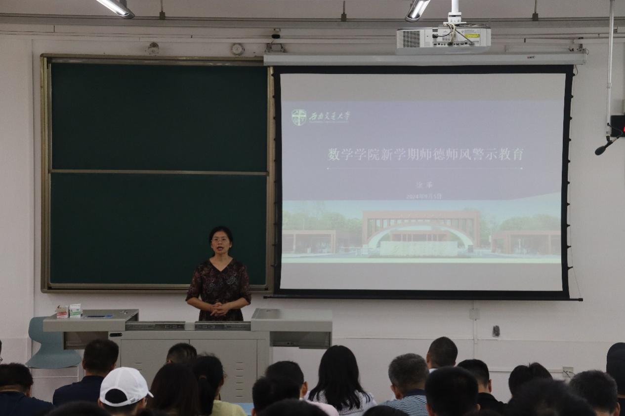 会议伊始,2138cc太阳集团党委书记徐革进行了新学期师德师风的警示教育。徐革书记以党的二十届三中全会中所提出的“要提升教师教书育人的能力,健全师德师风建设长效机制”为切入点,强调全体教师认清自身角色、恪守分内职责,在自我的责任框架中做好教师任务,维护好教书育人、不懈钻研的教师形象。坚守行为底线,追求精神高线,营造清朗文明的新型师生关系。