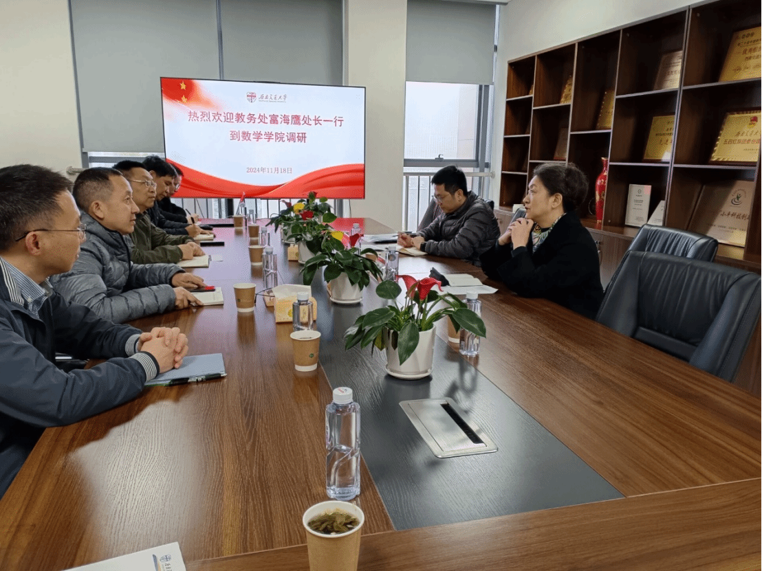 2024年11月18日,学校教务处富海鹰处长、创新与实践教学办公室李静波主任到2138cc太阳集团,对我院数学建模团队进行了调研交流。2138cc太阳集团杨晗院长、王璐副院长、潘小东副院长以及数学建模团队的全体老师参与了此次会议。