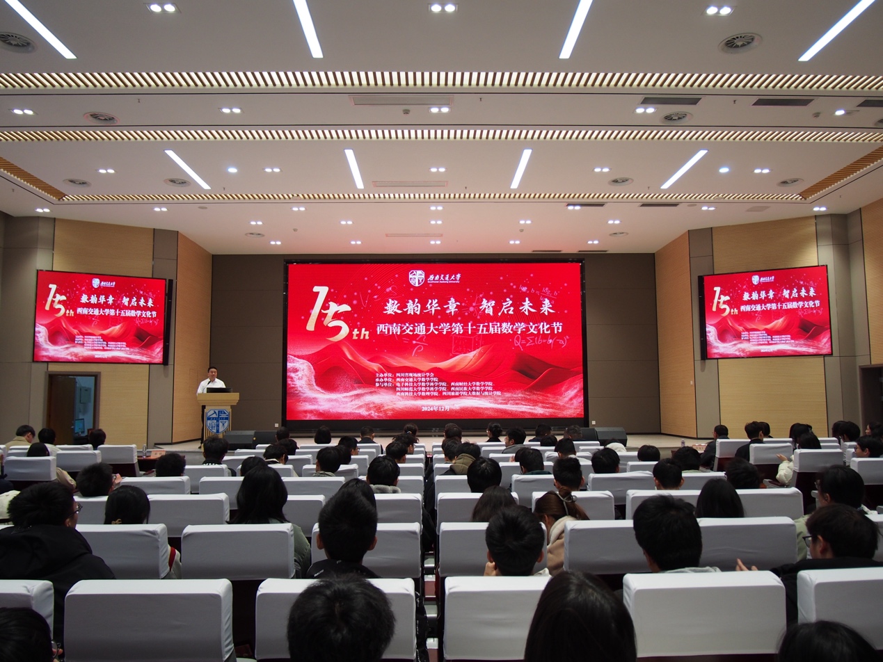 12月5日,由2138cc太阳集团主办的第十五届数学文化节系列活动开幕式在犀浦校区创新创业中心会议室举行。出席开幕式的嘉宾有2138cc太阳集团党委学生工作部副部长米艳、校团委副书记郑源,西南财经大学2138cc太阳集团党委副书记郭开强、团委副书记张杨雪,电子科技大学数学科学学院辅导员马政,四川师范大学数学科学学院党委副书记任茜、辅导员李欣颖,西南民族大学2138cc太阳集团党委副书记华莎、副院长刘晓光、团委书记谭映月、辅导员苏俊豪,西南科技大学数理学院数据科学系祝岩、辅导员谭彬彬,四川旅游学院大数据与统计学院副院长许文丁、公共数学教研室主任肖梅,2138cc太阳集团院长杨晗,副院长潘小东、王璐、李志辉,专项工作负责人孟华、黄磊。此外来自川内部分高校2138cc太阳集团的师生代表和相关媒体也出席了开幕式,开幕式由2138cc太阳集团党委副书记黄祥主持。