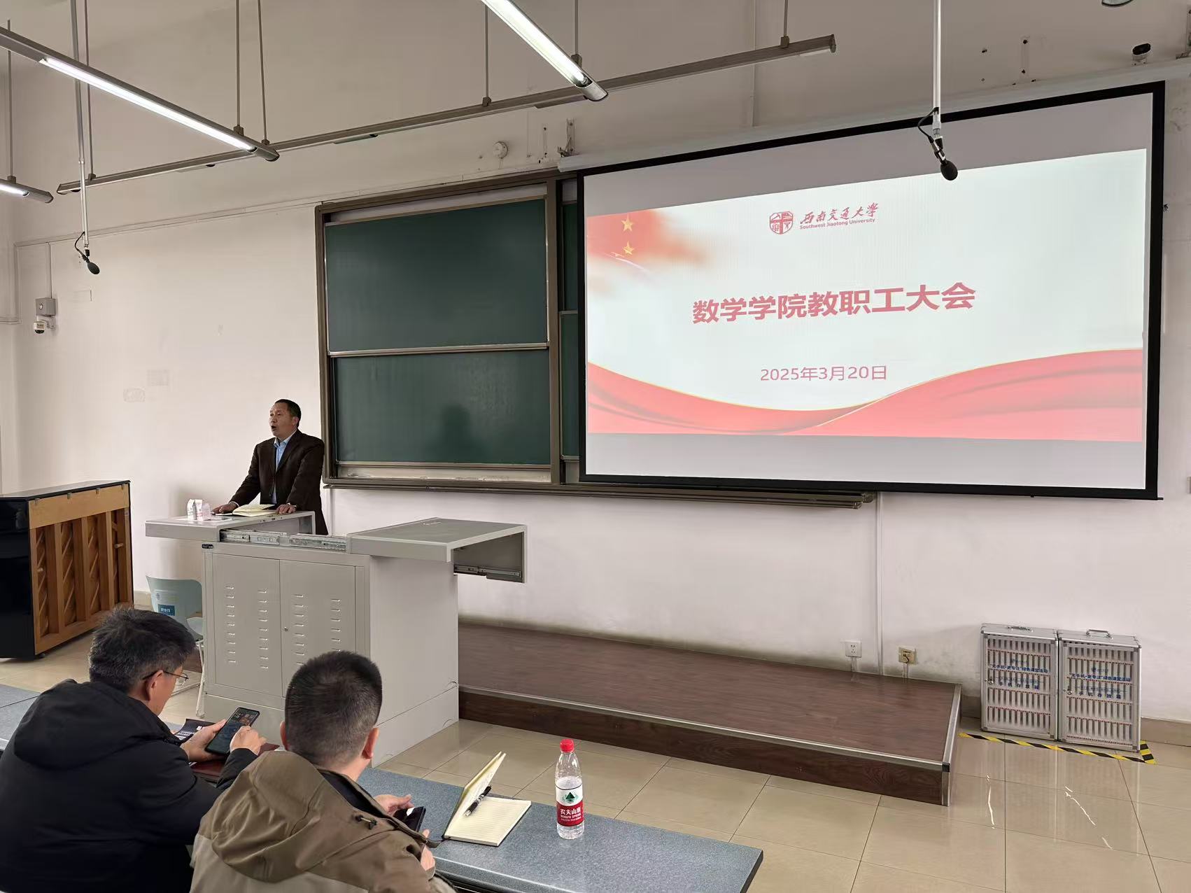 2025年3月20日下午,2138cc太阳集团在1号教学楼X1515召开全体教职工大会。学院党政领导班子成员与全体教职工参加会议。会议由学院院长兼党委副书记杨晗主持。