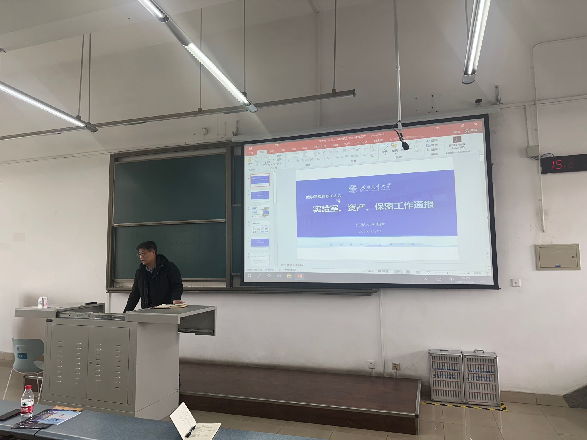学院副院长潘小东介绍了本学期教学工作安排,通报了本年度本科教学重点工作,分享了关于教育教学改革的思考。学院副院长李志辉通报了学院关于实验室安全管理的相关工作,传达了学院资产盘点等相关工作安排,带领老师们进行了保密相关学习,完成了保密宣传教育培训工作。