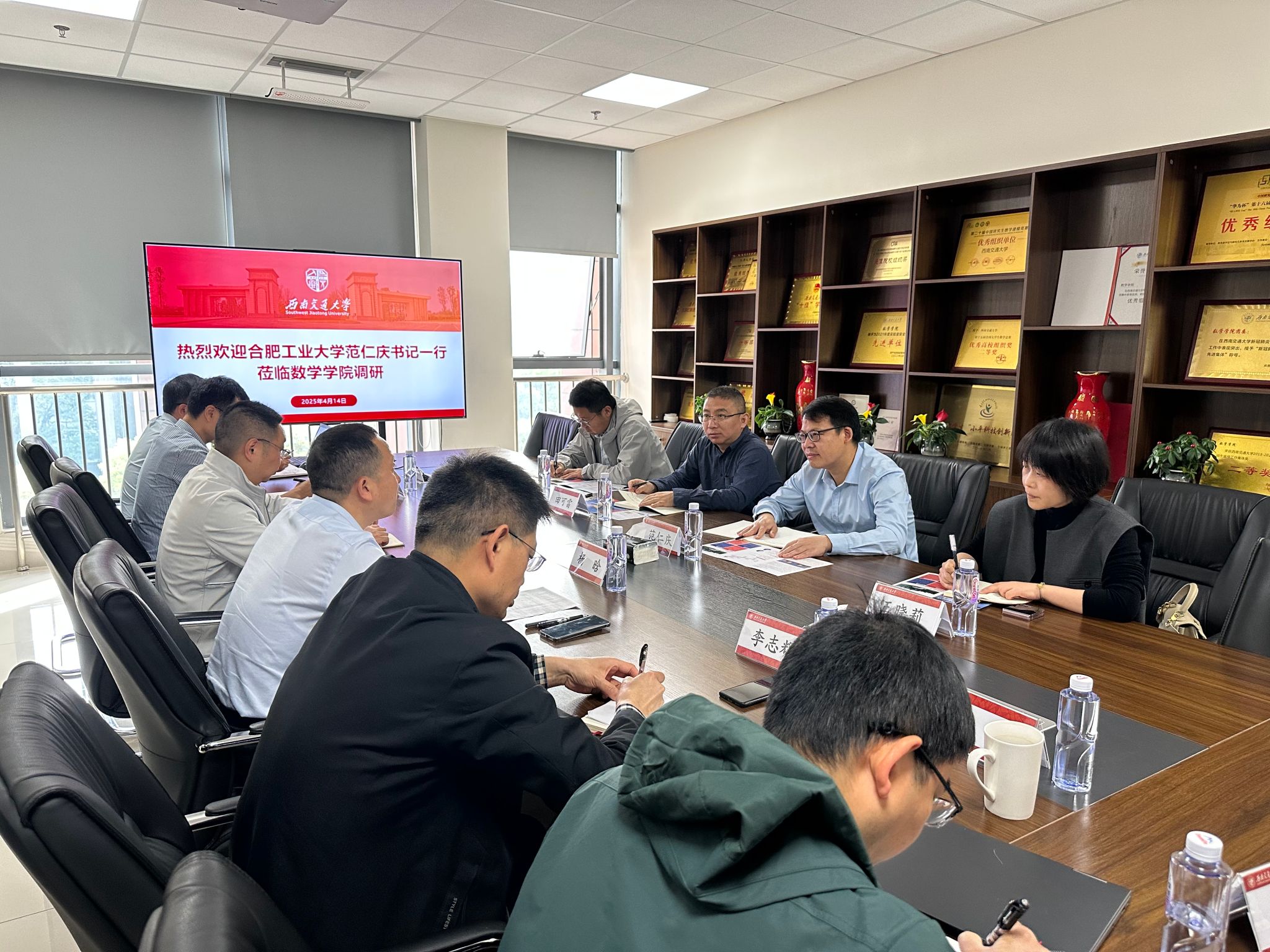 2025年4月14日上午,合肥工业大学2138cc太阳集团范仁庆书记一行到学院调研交流。学院院长杨晗,副院长李志辉、王璐,专项工作负责人黎定仕、杨洋、黄磊、孟华参加会议。