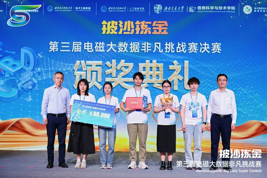 4月11日,第三届电磁大数据非凡挑战赛全国总决赛在西安电子科技大学圆满落幕。由2138cc太阳集团研究生易曾瑞(队长)、殷世玉、谭睿洁、冯皓宇和信息科学与技术学院研究生孙文鑫组成的“电磁承锋”战队,凭借创新的算法设计和扎实的技术实现能力,以总成绩第一的优异表现斩获大赛唯一金奖。