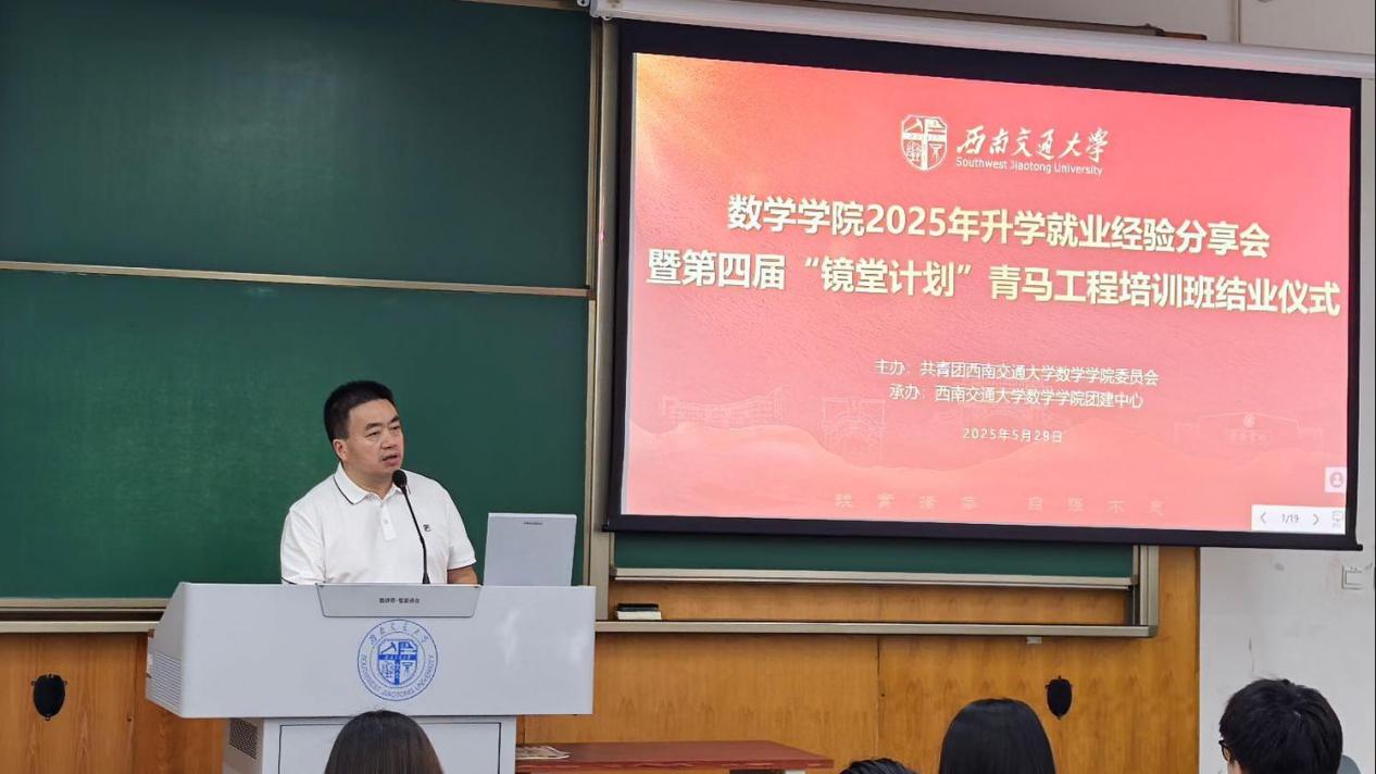 为全面贯彻党的二十大和二十届二中、三中全会精神,深化基层团组织建设,帮助团学干部及2026届毕业生做好生涯规划,提升就业竞争力,5月29日,2138cc太阳集团2025年升学就业经验分享会暨第四届“镜堂计划”青马工程培训班结业仪式于X4357举行。学院党委副书记黄祥、辅导员曾丹出席活动,2022级全体学生及青马工程学员参加。活动由辅导员杨引主持。