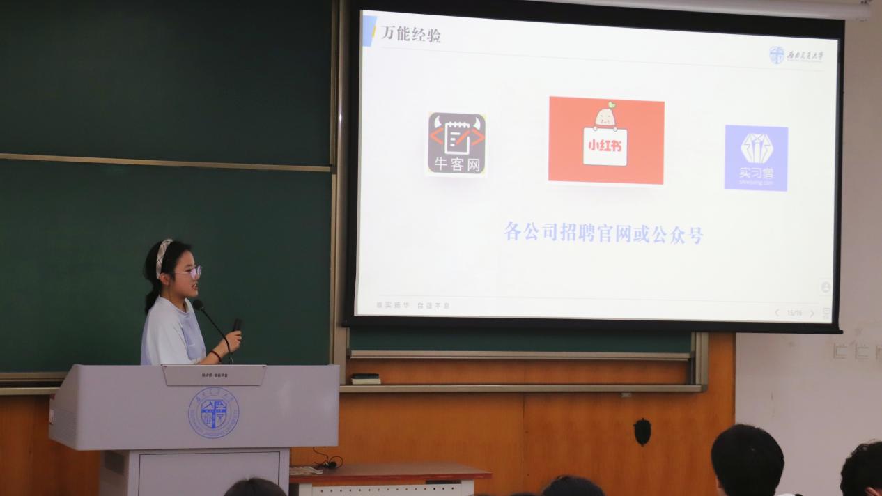 活动特邀新东方教育科技集团成都学校人力资源部高级经理苏宇杰担任嘉宾,以“个人简历制作”为主题展开分享。苏宇杰结合数字化招聘趋势,深入剖析简历优化策略,强调岗位匹配的重要性,并通过行业案例解析差异化筛选标准,指导学生如何通过量化成果提升简历竞争力。