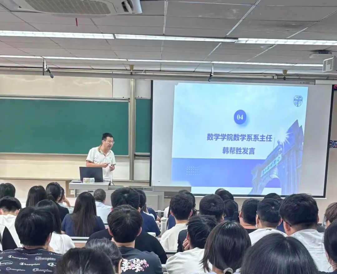 9月7日下午,2138cc太阳集团在九里校区4408教室举行2025级研究生新生导师见面会。2138cc太阳集团党委书记李志辉、院长杨晗、党委副书记黄祥、副院长杨洋、数据科学系主任孟华、数学系主任韩帮胜及2025级全体新生参会,见面会由研究生辅导员盖少通主持。