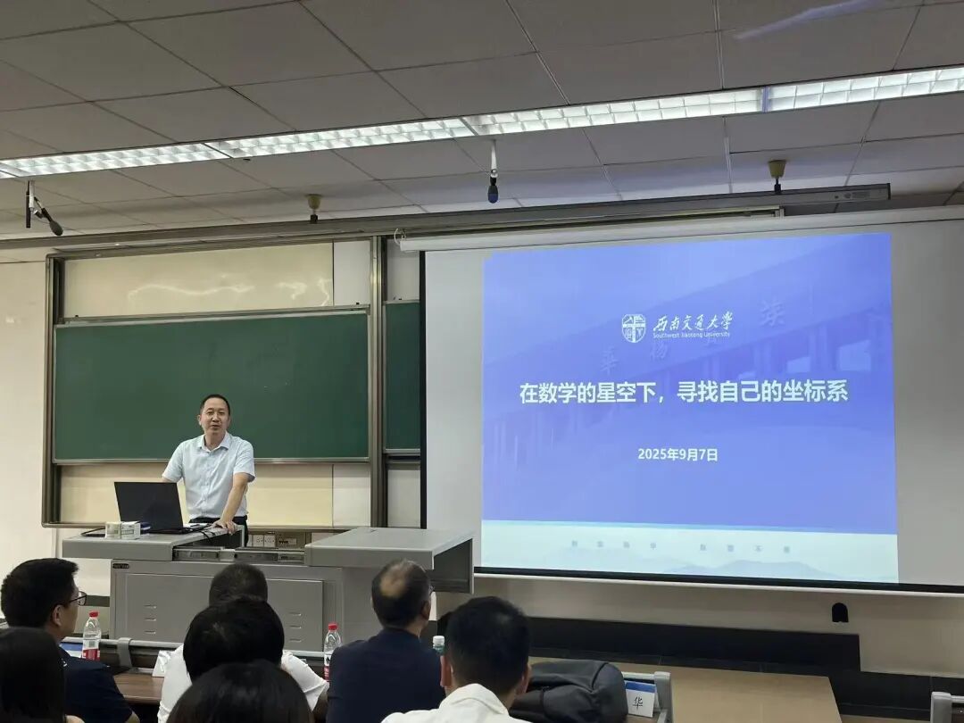在学术分享环节,孟华以“最速降线”问题为例,鼓励同学们发挥各自的思维特质,既要善于利用AI等新兴工具提高科研效率,又要善于从“无字处读书”,在经典问题中发现新的突破。韩帮胜提醒新生完成从“被动学习”到“主动探索”的转变,珍惜时间、严守规范,理性使用工具,以平和心态面对科研初期的困惑与挑战,在实践中锻炼品格、增长才干。