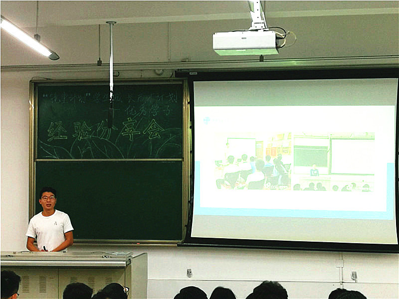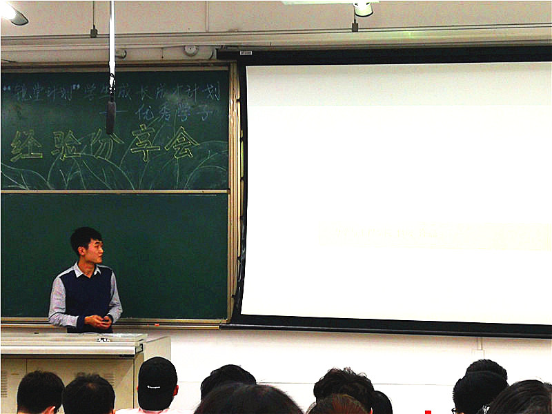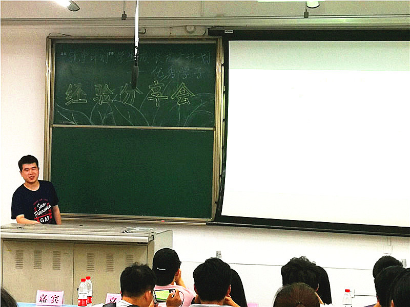 随后,便是由来自2014级茅院(机械)并保研至我校牵引动力国家重点实验室的优秀学子曲帅分享自己的成长历程。首先将他自己的大学生活规划简明地阐述给大家,继而又言简意赅地讲述了其在学术活动、个人经历、学生工作方面的一些历程。表达出其内心视“学习为第一,而不是唯一”的思想,充分地展示出了一个丰富多彩、积极向上的大学生活。