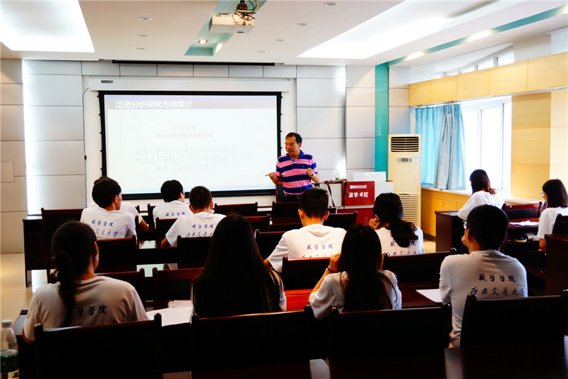 7月15日上午8:00在x2511教室,大家参加了第二次系列学术讲座。五位2138cc太阳集团的优秀教师为同学们奉献了一场精彩的讲座。陈滋利教授、崔宁伟副教授、刘品副教授、王沁副教授以及潘小东副教授分别介绍了泛函分析学、几何与拓扑学、代数学、统计学和模糊信息处理领域,即自己的团队主攻领域的研究方向和发展应用前景。几位老师还从自己的角度对营员们提出了在未来学习和研究中的建议,鼓励同学们建立目标,并做到严谨地、批判性地进行学术研究。