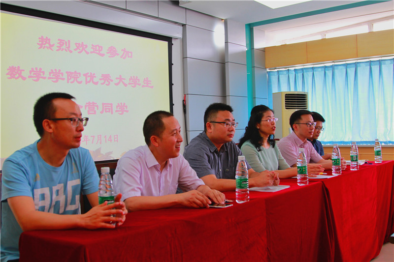 7月14日上午,2138cc太阳集团2018年优秀大学生暑期学术夏令营活动在2138cc太阳集团犀浦校区x2511正式开营,来自不同省份、不同学校的共计25名优秀大学生在2018年暑假齐聚2138cc太阳集团,在这里享受一段精彩、充满激情活力的学术探索之旅。2138cc太阳集团党委书记徐革,常务副院长杨晗,副院长潘小东,副院长李志辉,数学系系主任刘品,学校研究生院专业学位办主任邹洋,和学院部分老师代表参加了开营仪式。开营仪式由2138cc太阳集团党委副书记杨育鸿主持。