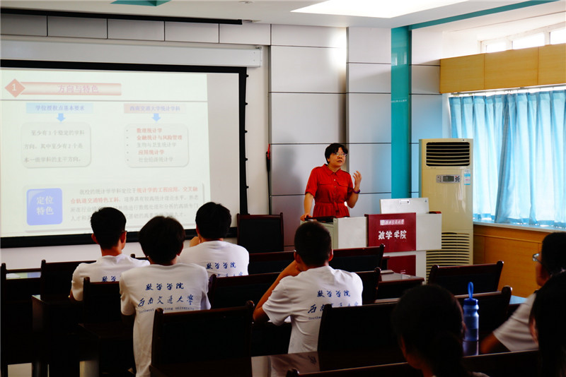 开营仪式后进行了学校和学院建设发展专题介绍。常务副院长杨晗介绍了数学院的教育概况,杨院长期望同学们积极利用参加夏令营的机会,开阔眼界,增长见识,充分了解西南交大丰富的科研资源,深刻感受数学院深厚的文化底蕴, 深入领悟数学在科技生活中的重要作用和无穷魅力。