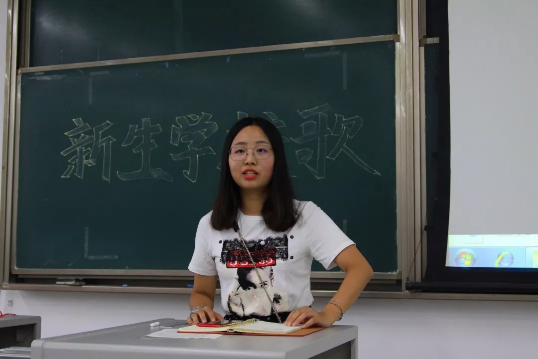 首先,他们帮新同学们了解了校歌背景,同时也是在讲述学校一部分的历史。胡皓量简短地介绍了学校的发展史以及与校歌的每个词语的关系。随后,在视频的播放下,校歌的旋律逐渐响起。接下来便由胡皓量与闵琮惠逐句带领新生们学习校歌的演唱。几番练习之后,2138cc太阳集团新生们集体合唱了两遍校歌。同学们的合唱一遍比一遍熟练,相信他们已然将校歌旋律牢记于心。