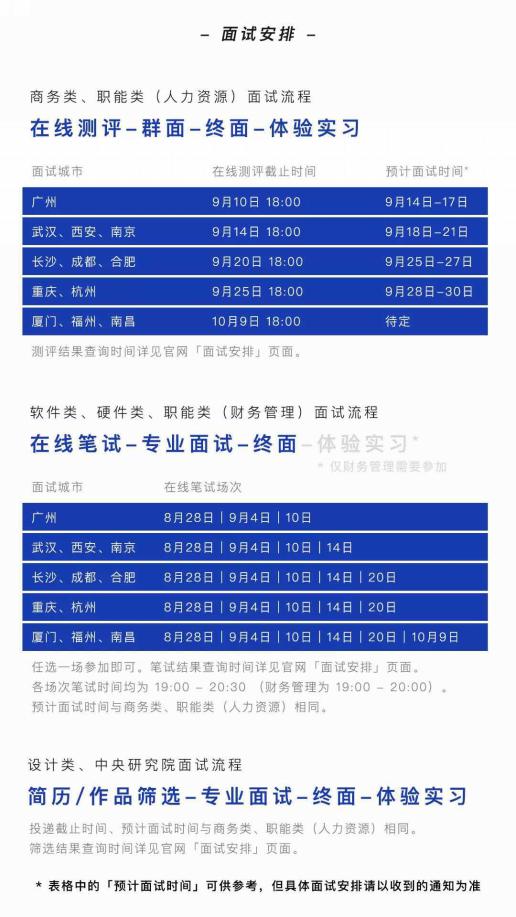 注1:财务管理岗位面试城市为:广州、武汉、南京;电源工程师面试城市为:广州。