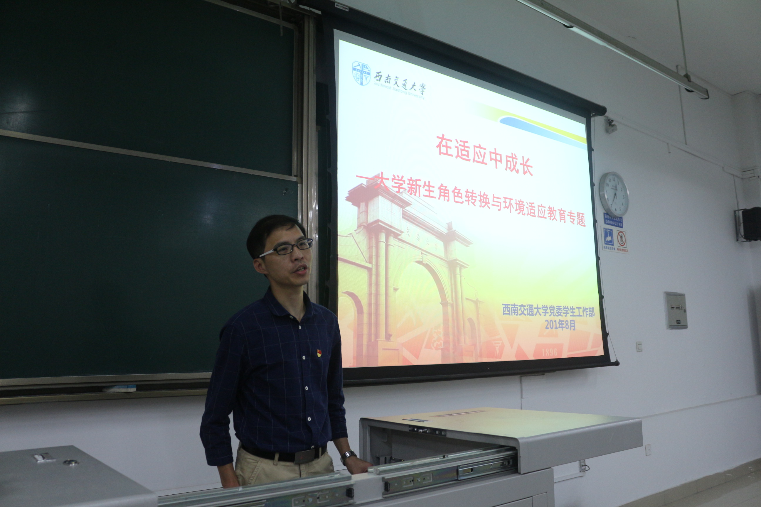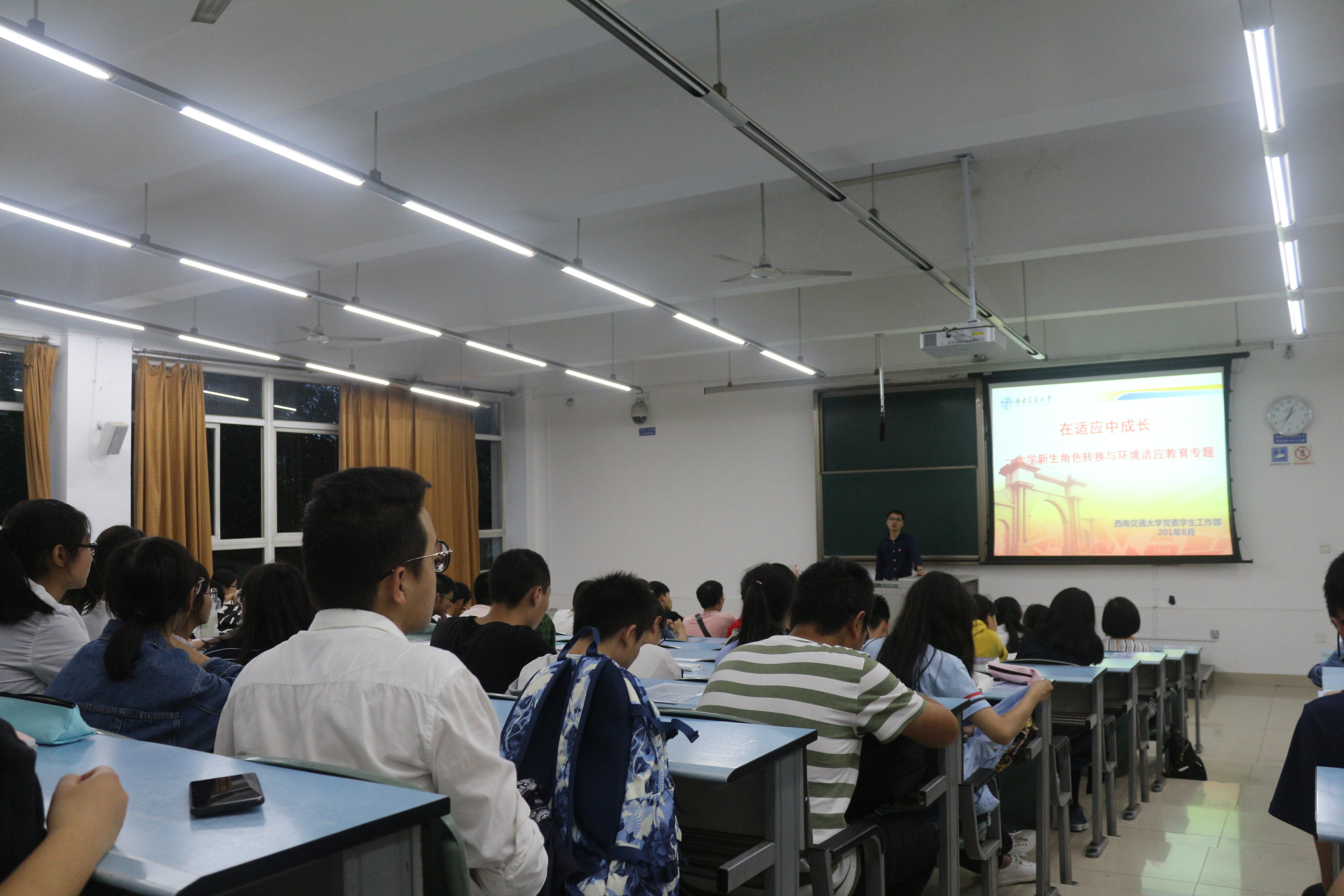 9月18日19时,2138cc太阳集团全体本科新生于x2215参加了新生角色转换与环境适应专题和安全教育的讲座。本次讲座由2138cc太阳集团党委杨育鸿副书记主讲,2018级辅导员钟义婷老师到场督导。