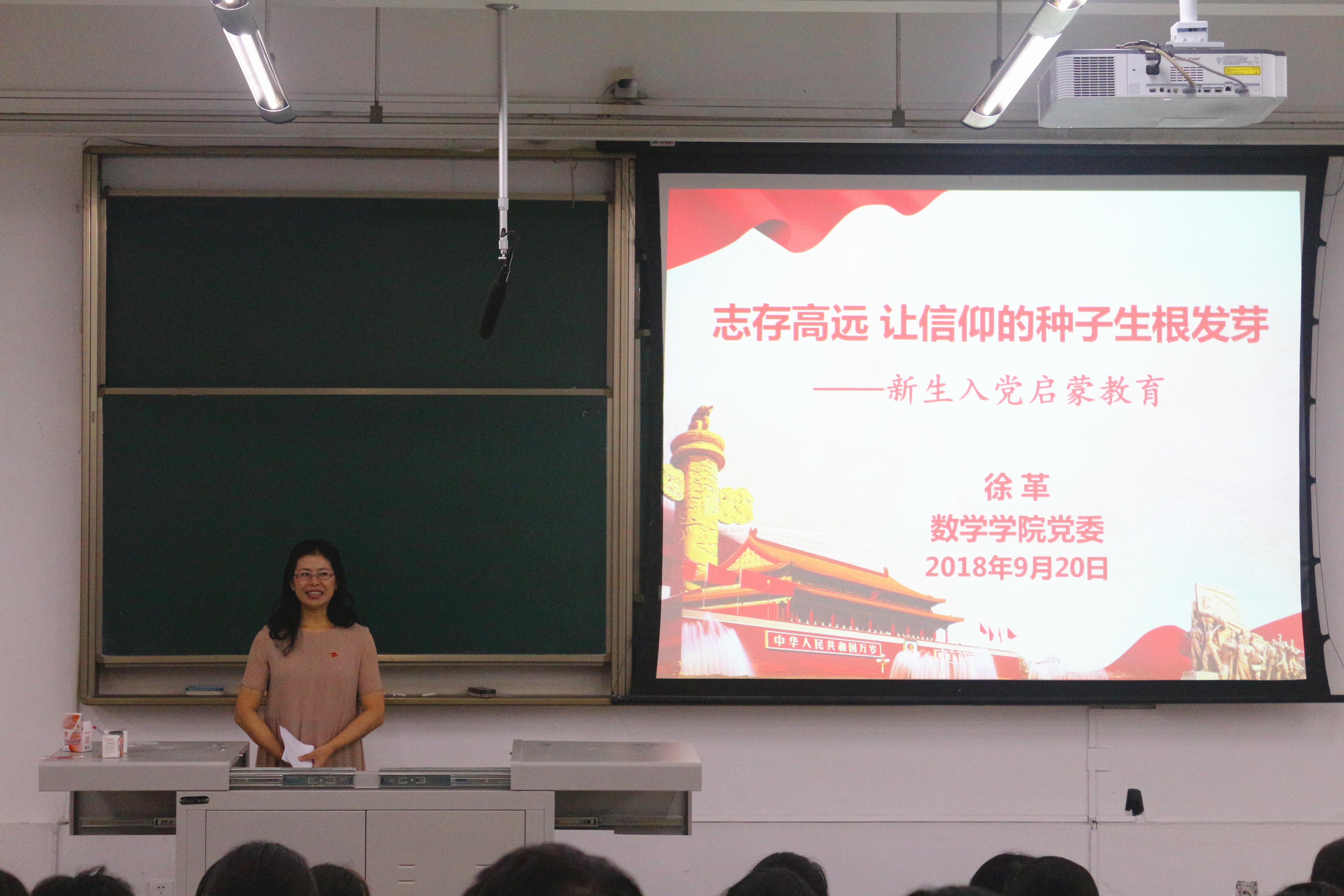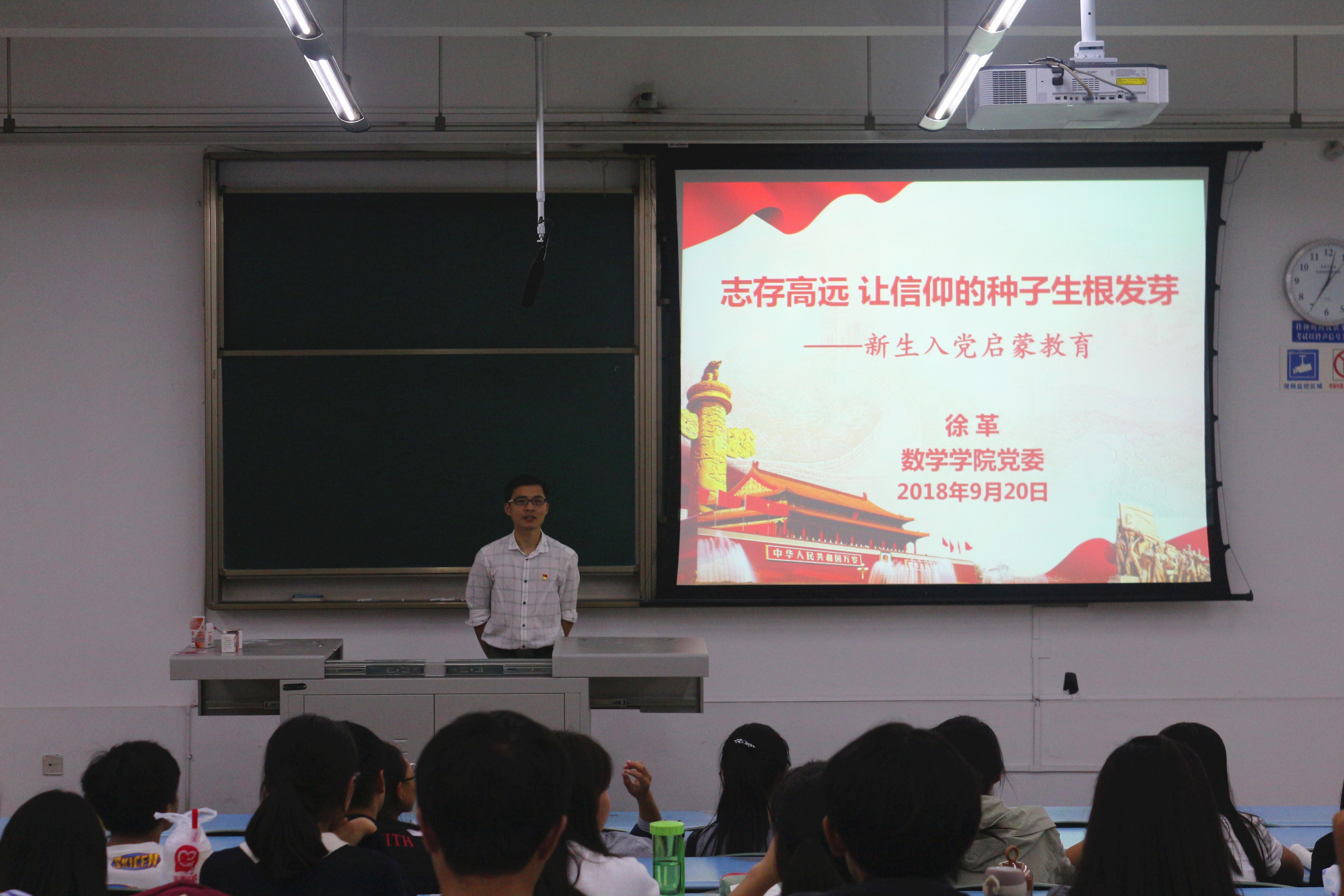 9月20日晚上七点,2138cc太阳集团党委书记徐革为2018级全体本科生开展了以“志存高远,让信仰的种子生根发芽”为主题的入党启蒙专题讲座,学院党委副书记杨育鸿和18级辅导员钟义婷也到场聆听了本次讲座。