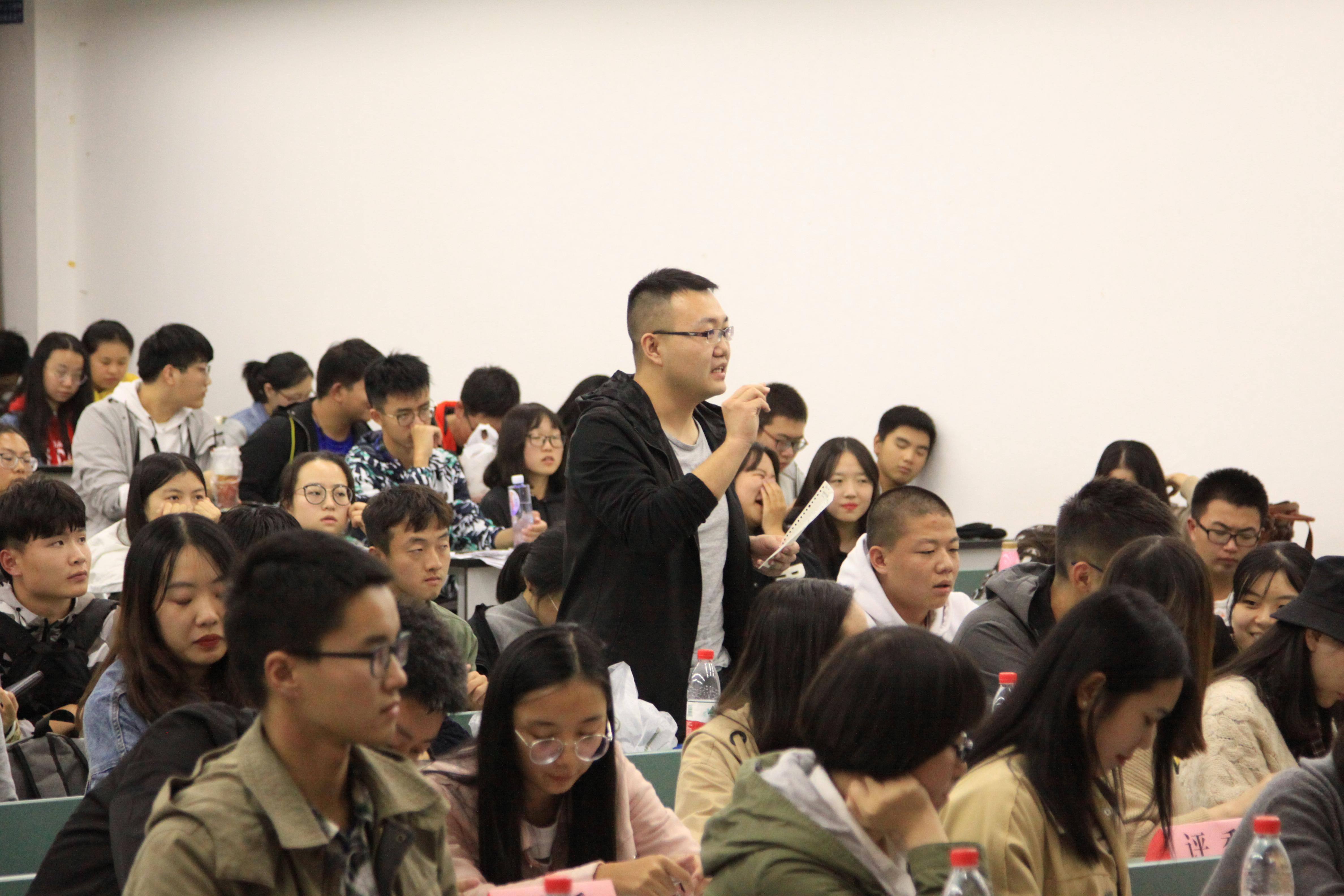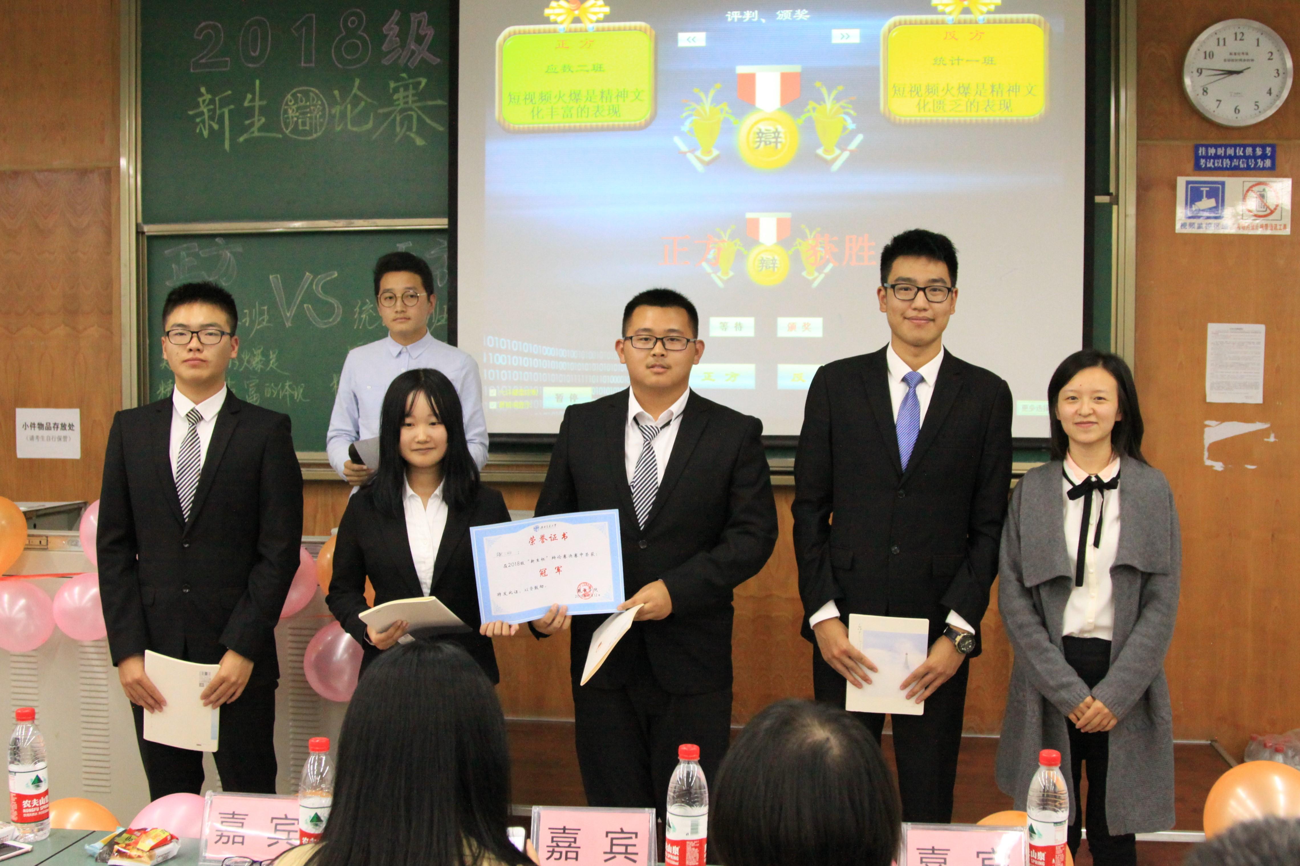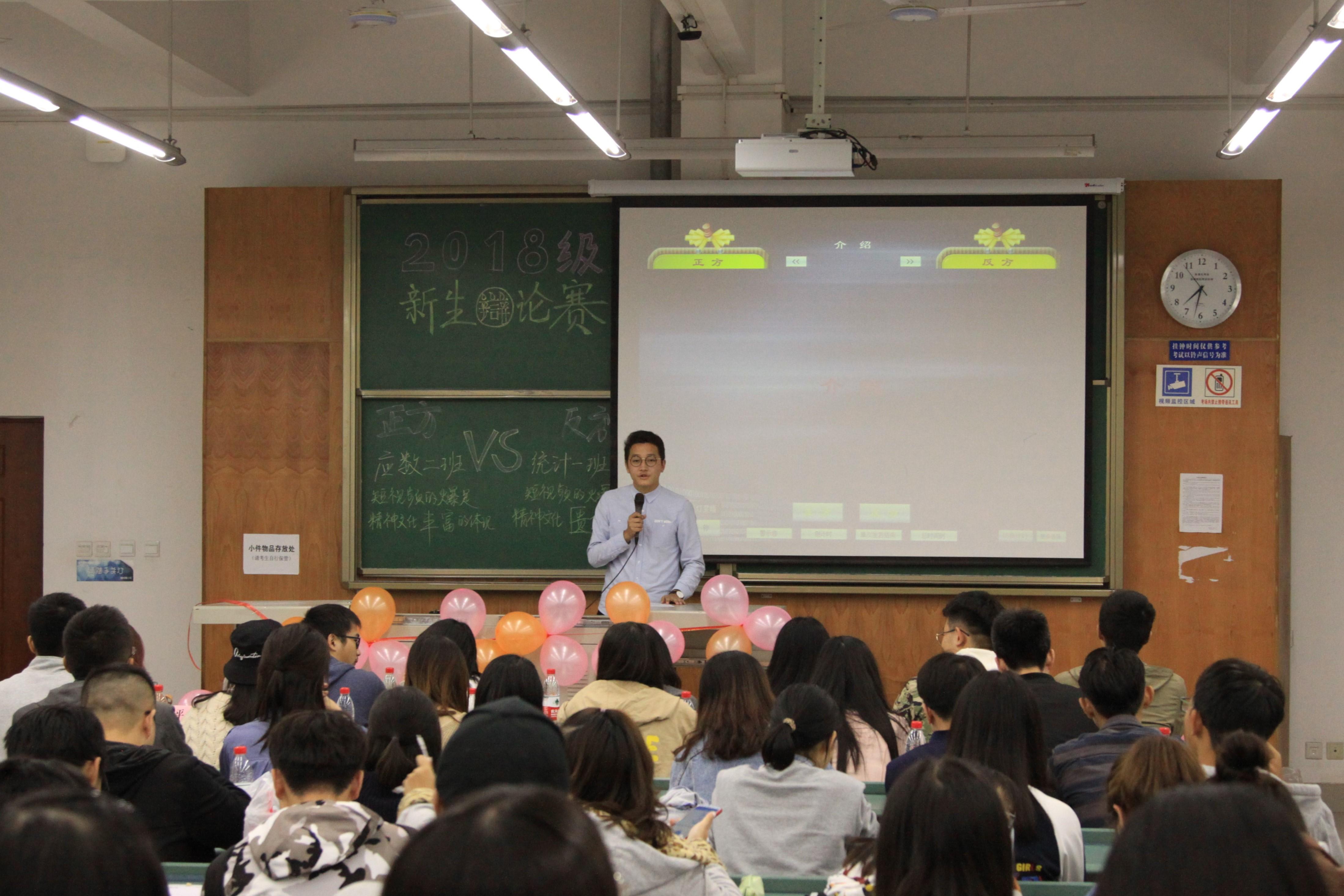 本次精彩的辩论赛正方是数学二班,反方是统计一班,他们以短视频的火爆是精神文化丰富的体现还是精神文化缺乏的体现为辩题,展开激烈辩论。