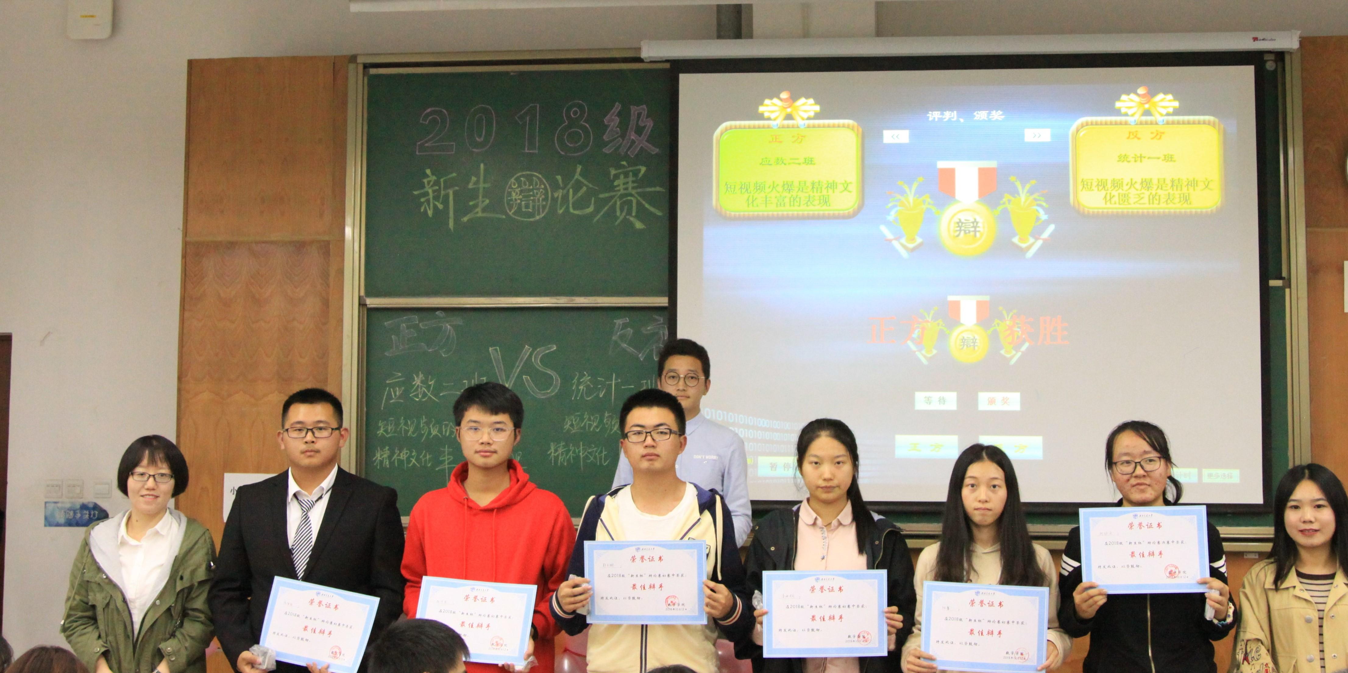 最终主持人揭晓本场比赛的结果,数学二班获得了最终胜利,数学二班二辩获得了最佳辩手的荣誉称号。颁奖仪式结束后,2138cc太阳集团2018级新生辩论赛决赛正式拉下完美帷幕。