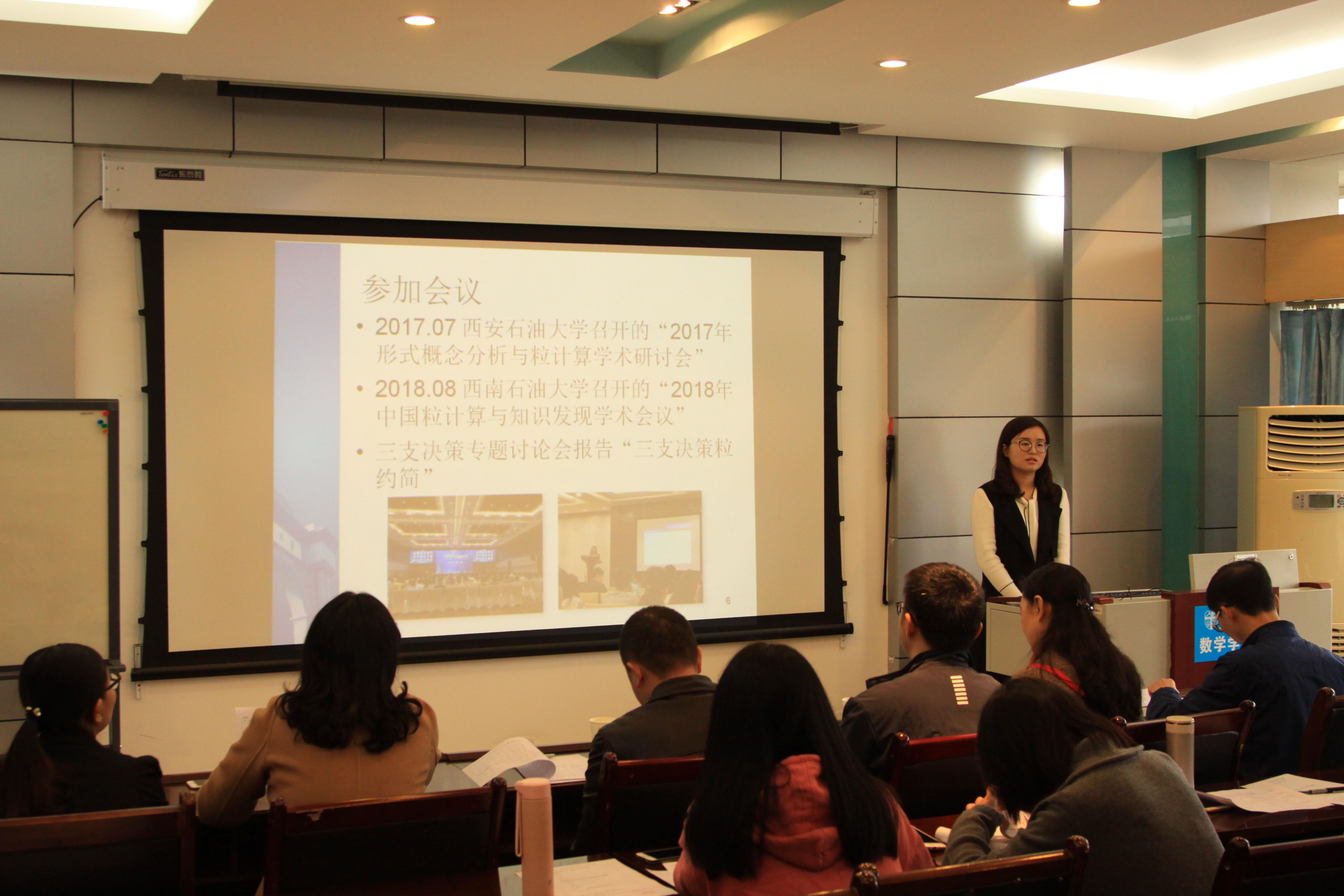 之后进行的是极客数学帮助学金的评定答辩,答辩者介绍了自己的家庭经济情况,也展示了自己在学校取得的一些优异成绩,同时表达了自己在日后继续奋发向上的决心。