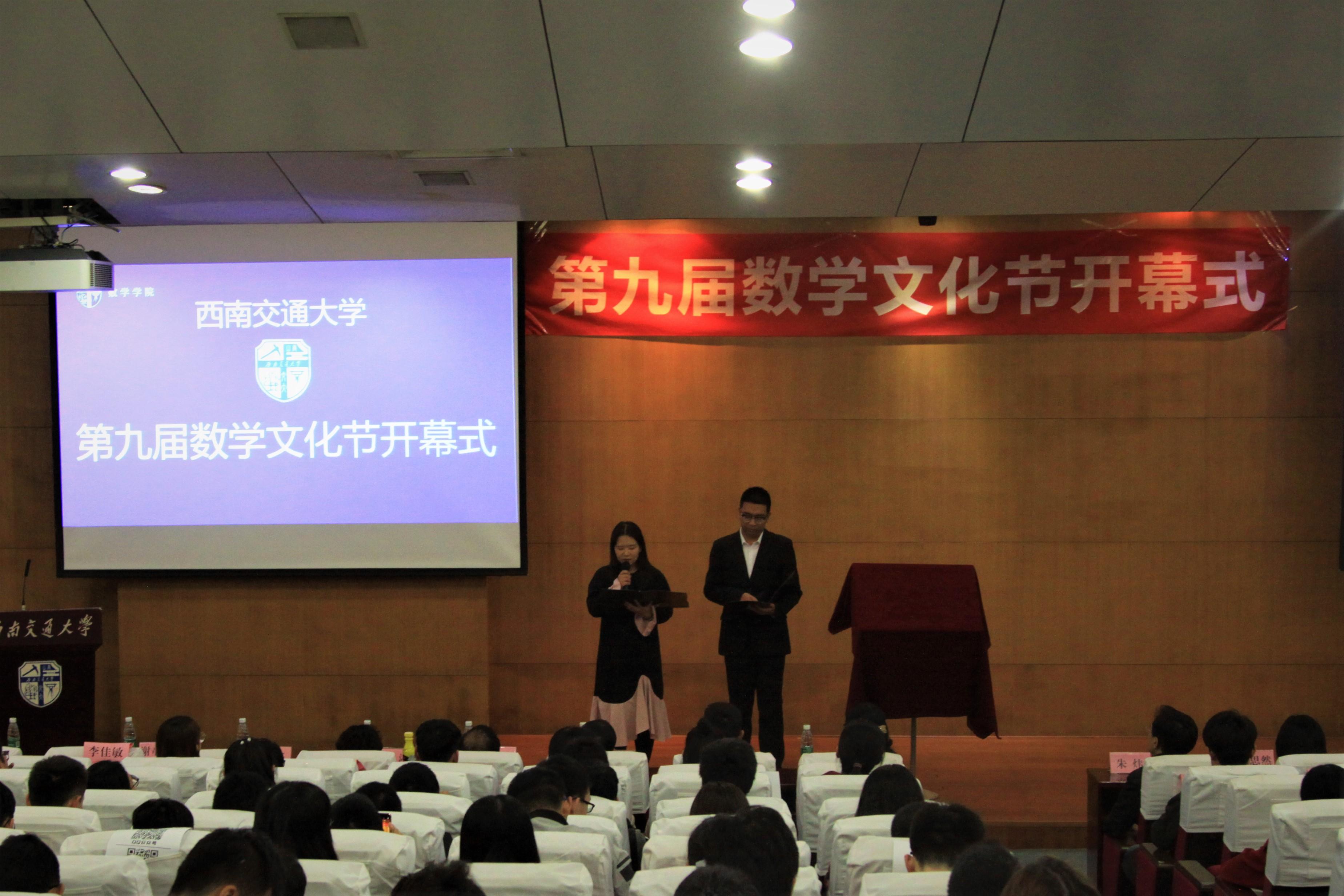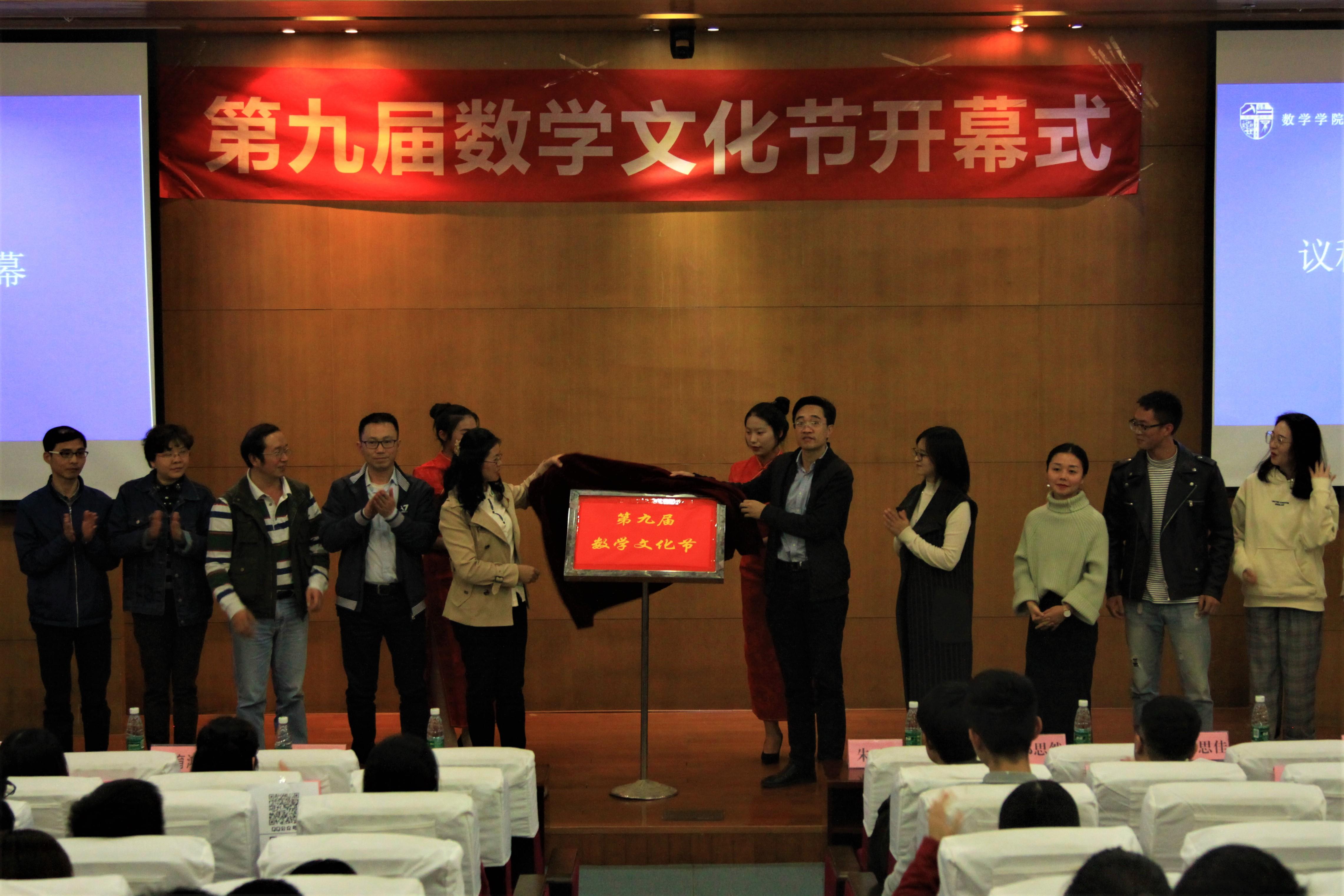 10月30日晚上7点,2138cc太阳集团第九届数学文化节开幕式及系列讲座在图书馆一号报告厅正式举行。2138cc太阳集团党委徐革书记、校团委朱炜副书记、2138cc太阳集团潘小东副院长、学院党委杨育鸿副书记、信息与计算科学系主任赵海良教授、公共教学部主任梁涛副教授、统计系王沁副教授、2138cc太阳集团学工组副组长兼团委书记邓思然老师、辅导员钟义婷老师、谢童心老师、李思佳老师以及其他兄弟学院团委老师、学生会主席等作为嘉宾出席本次活动。