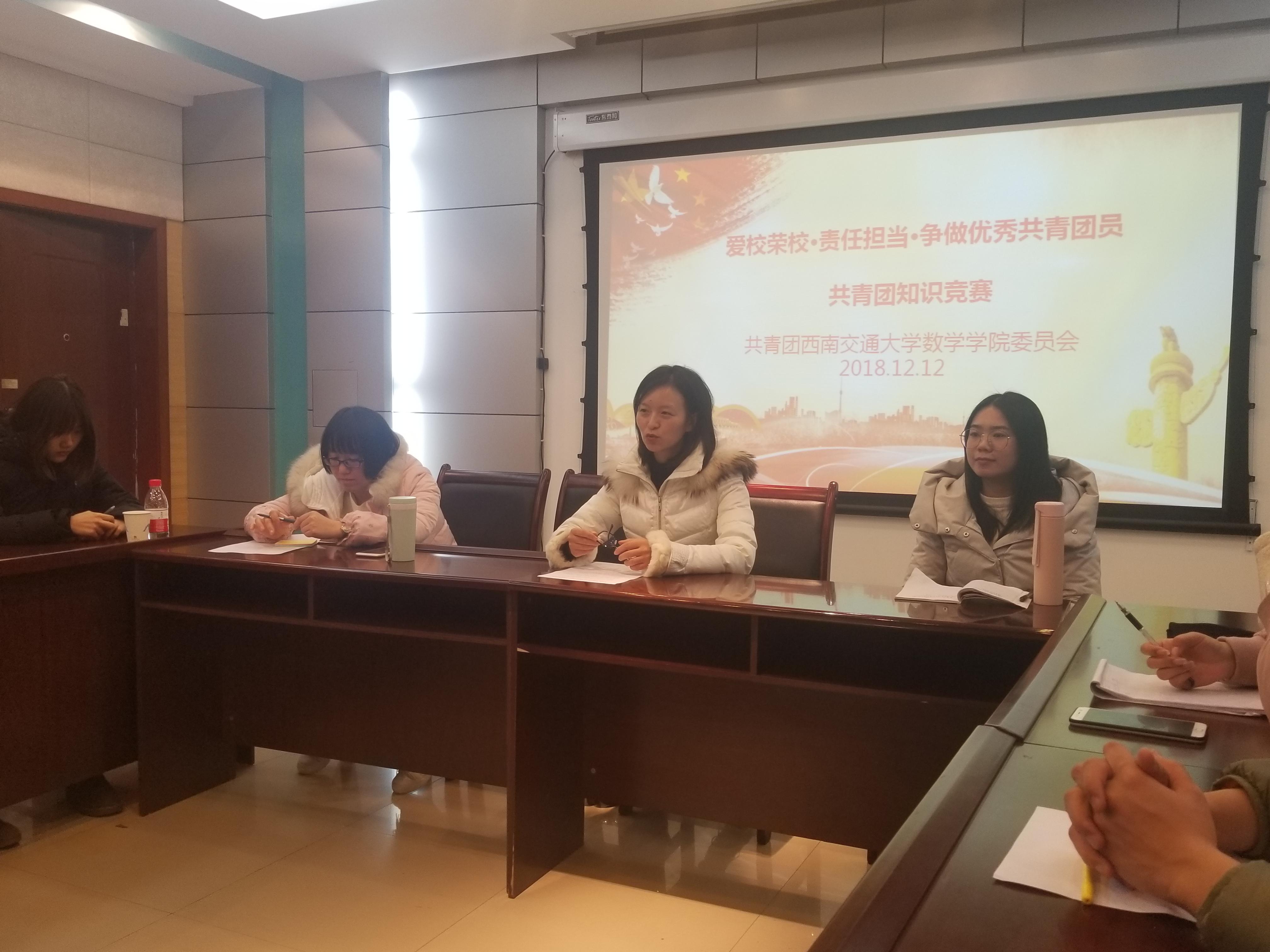 首先,邓思然老师发表了讲话。邓老师首先总结概括了四个团学组织这一年来的工作情况,鼓励各大组织的同学们在未来的工作中再接再厉;随后邓思然老师介绍了本次共青团知识竞赛的流程。接着,本次知识竞赛正式开始,大屏幕上出现的每一个问题,在场同学都积极回答,显示了2138cc太阳集团团员们对于党团知识的熟练掌握。