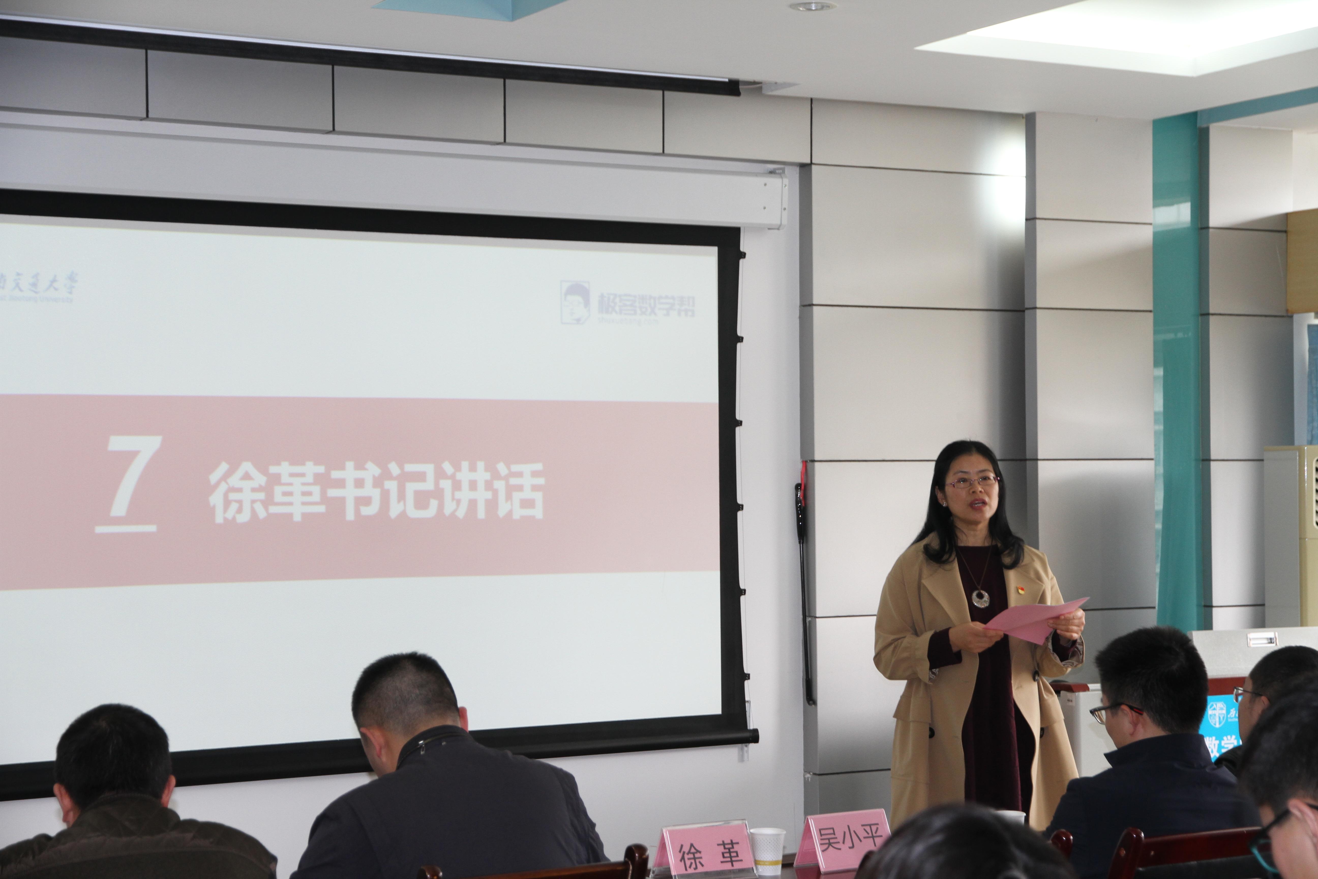 随后,2138cc太阳集团党委徐革书记进行了总结讲话。首先徐书记向学校和极客数学帮对学院的发展支持表示了感谢,随后向大家介绍了2138cc太阳集团强大的师资力量、近年来2138cc太阳集团学生在各种竞赛的获奖情况、各类科研科创取得的良好成果以及毕业生就业深造情况,同时也对吴小平总经理提出的三个方面共同点表示赞同,也希望在未来2138cc太阳集团和极客数学帮有更多的合作。最后,徐革书记也鼓励获奖的学生可以再接再励,始终牢记交大精神,砥砺前行,希望2138cc太阳集团的同学们在学业优异的同时也要心怀感恩,回报社会。