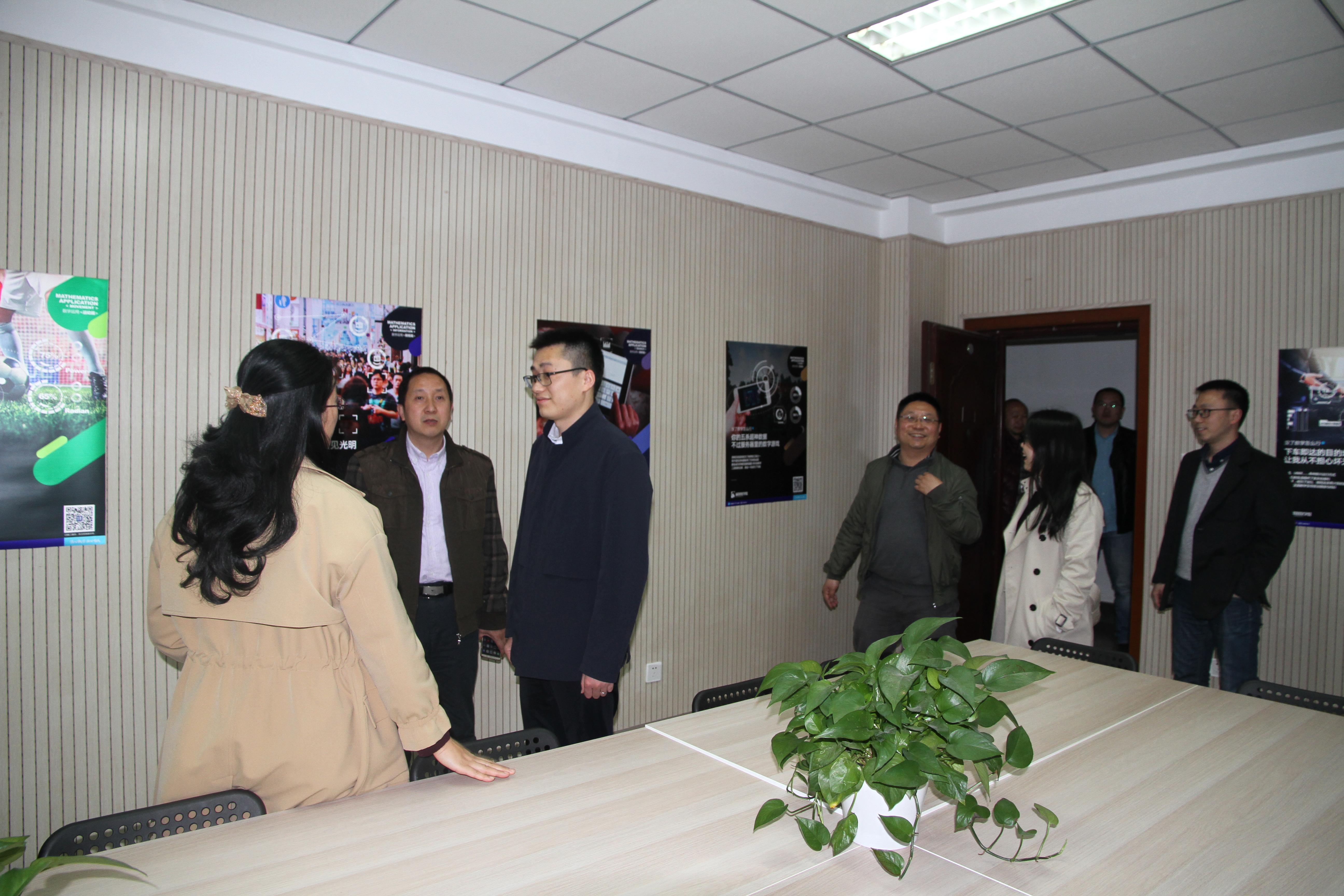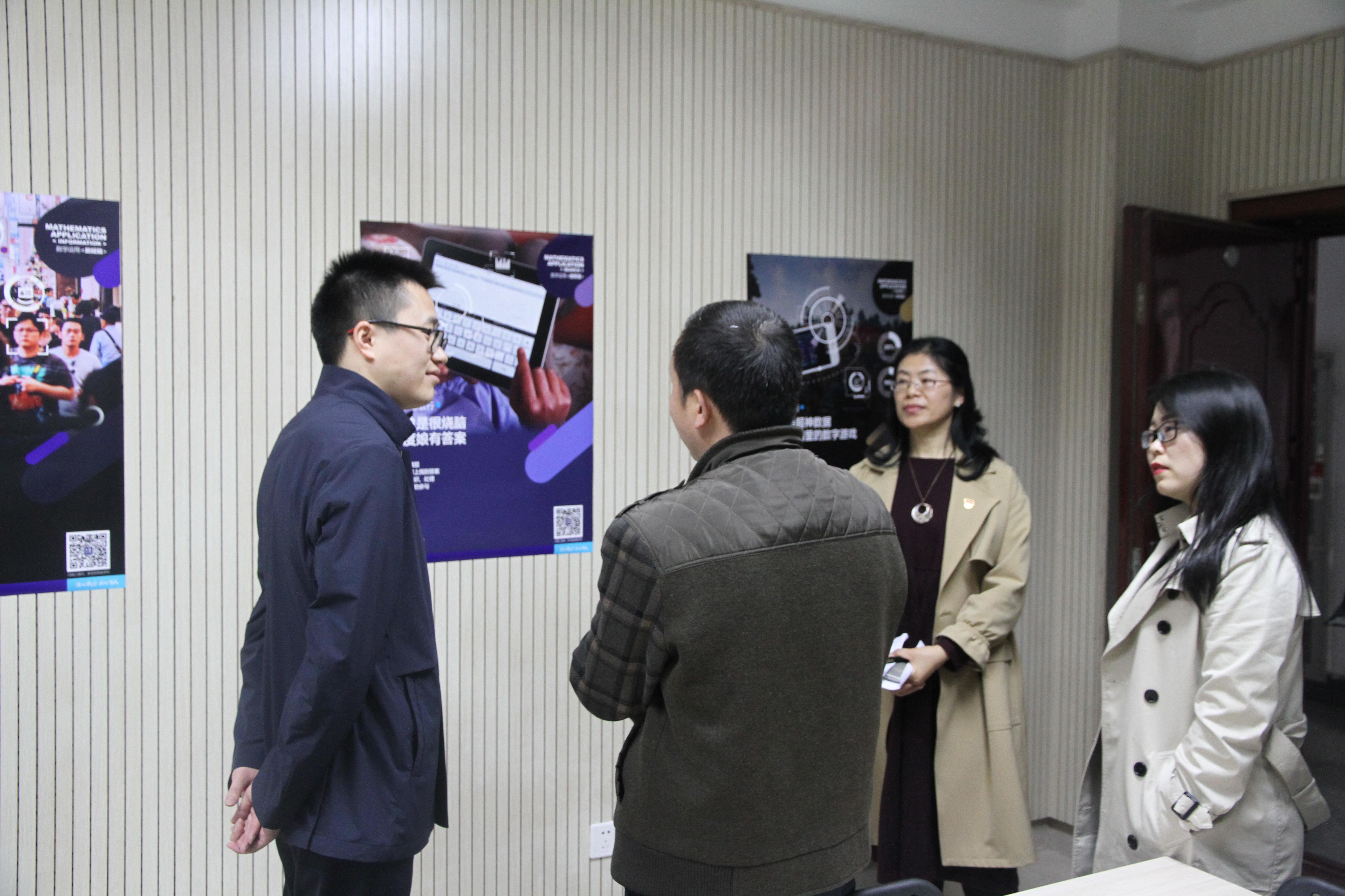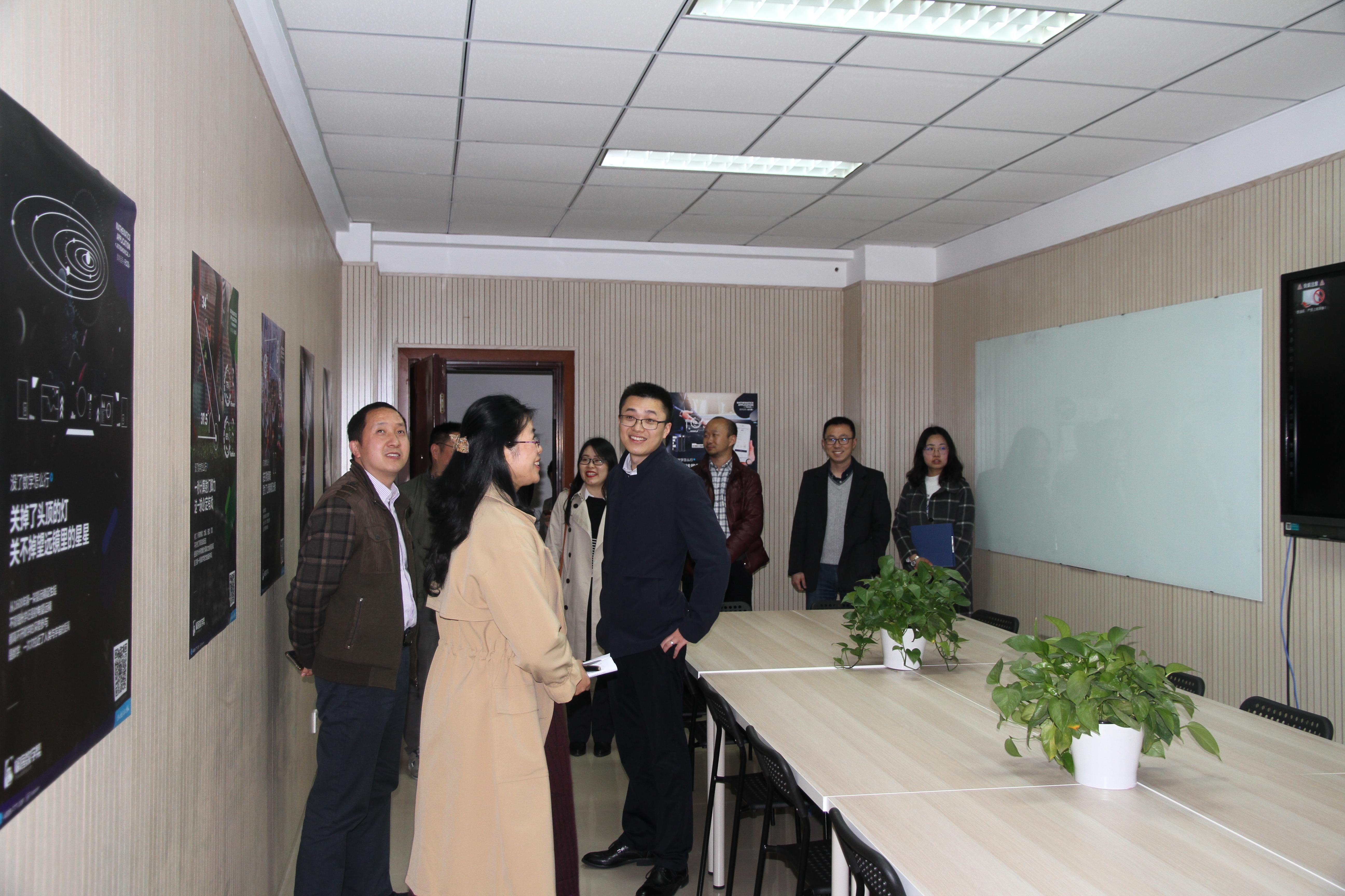 最后,极客未来教育科技有限公司的几位来宾在学院领导的带领下参观了科创工作室,并且双方针对进一步合作展开了探讨。至此,本次“极客数学帮奖助学金“颁奖仪式暨科创工作室揭牌仪式圆满结束。