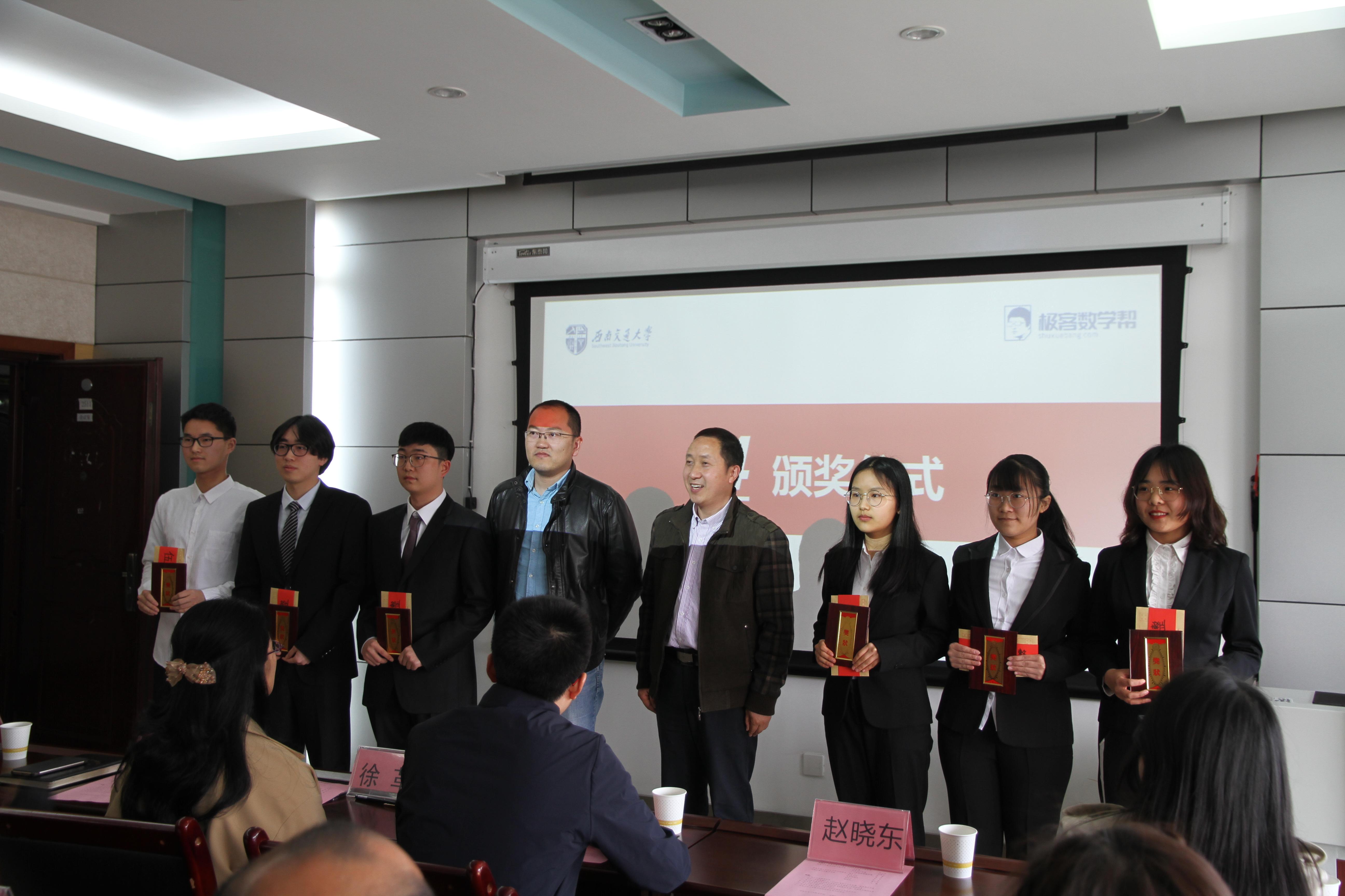 3月20日15:40,2138cc太阳集团于二教学术报告厅X2511举行了“极客数学帮奖助学金”颁奖仪式暨科创工作室揭牌仪式。参加仪式的领导嘉宾有:极客未来教育科技有限公司总经理吴小平、市场中心总监赵晓东、人力资源部招聘经理张霞、2138cc太阳集团对外合作与联络处副处长潘昱、2138cc太阳集团党委书记徐革、常务副院长杨晗、副院长潘小东、副院长王璐、团委书记邓思然,同时参加的还有学工组全体辅导员以及“极客数学帮奖助学金”获奖学生。仪式由2138cc太阳集团党委副书记杨育鸿主持。