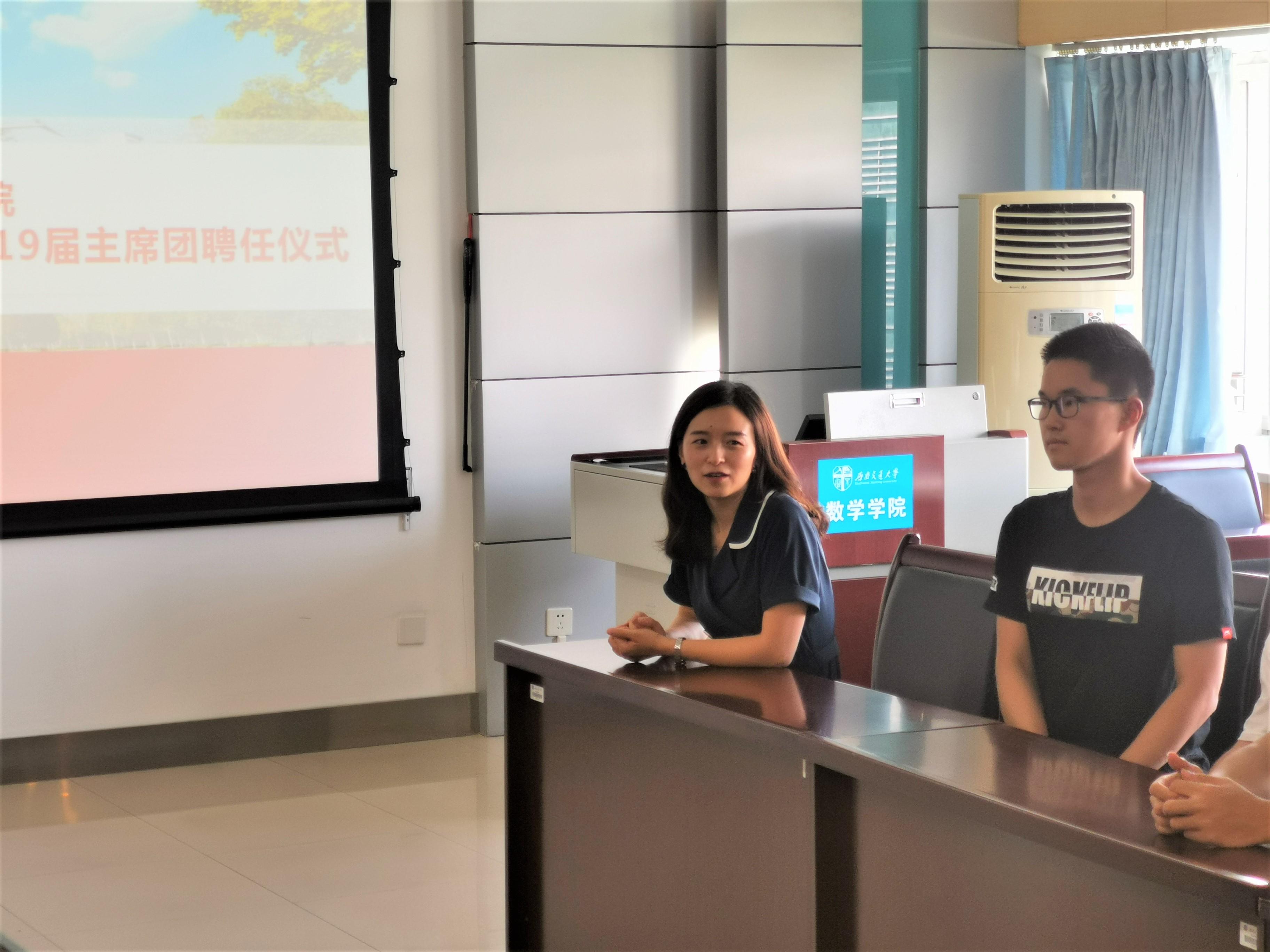 7月4号下午5点,2138cc太阳集团团委在X2511和X2501举办了2138cc太阳集团2018届团委总结大会暨2019届主席团聘任仪式。2138cc太阳集团团委书记邓思然、团学组织辅导员钟义婷、张素子以及各个团学组织的新老主席团出席了本次活动。本次活动由团委副书记还鸿新主持。