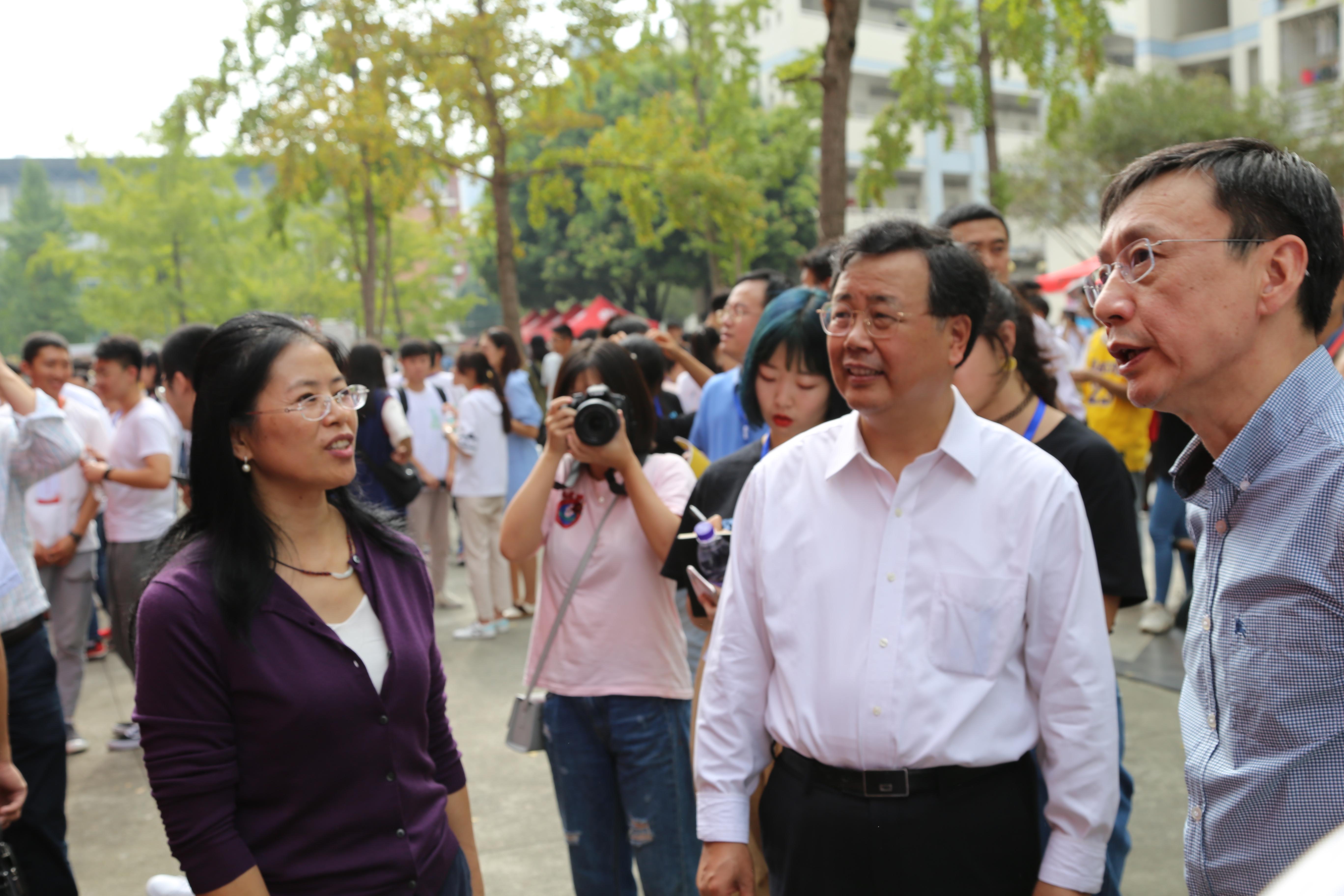 4点半左右校党委书记王顺洪,校长杨丹也来到2138cc太阳集团迎新点慰问迎新工作者,并关心问候了正在报名的同学。之后王书记和杨校长与学院领导进行了交流,徐革书记说道,现如今对数学感兴趣并且报考2138cc太阳集团的学生越来越多,这对于2138cc太阳集团的发展是一个好的现象,之后便向书记校长介绍了2138cc太阳集团新增的数据科学与大数据专业的一些情况。