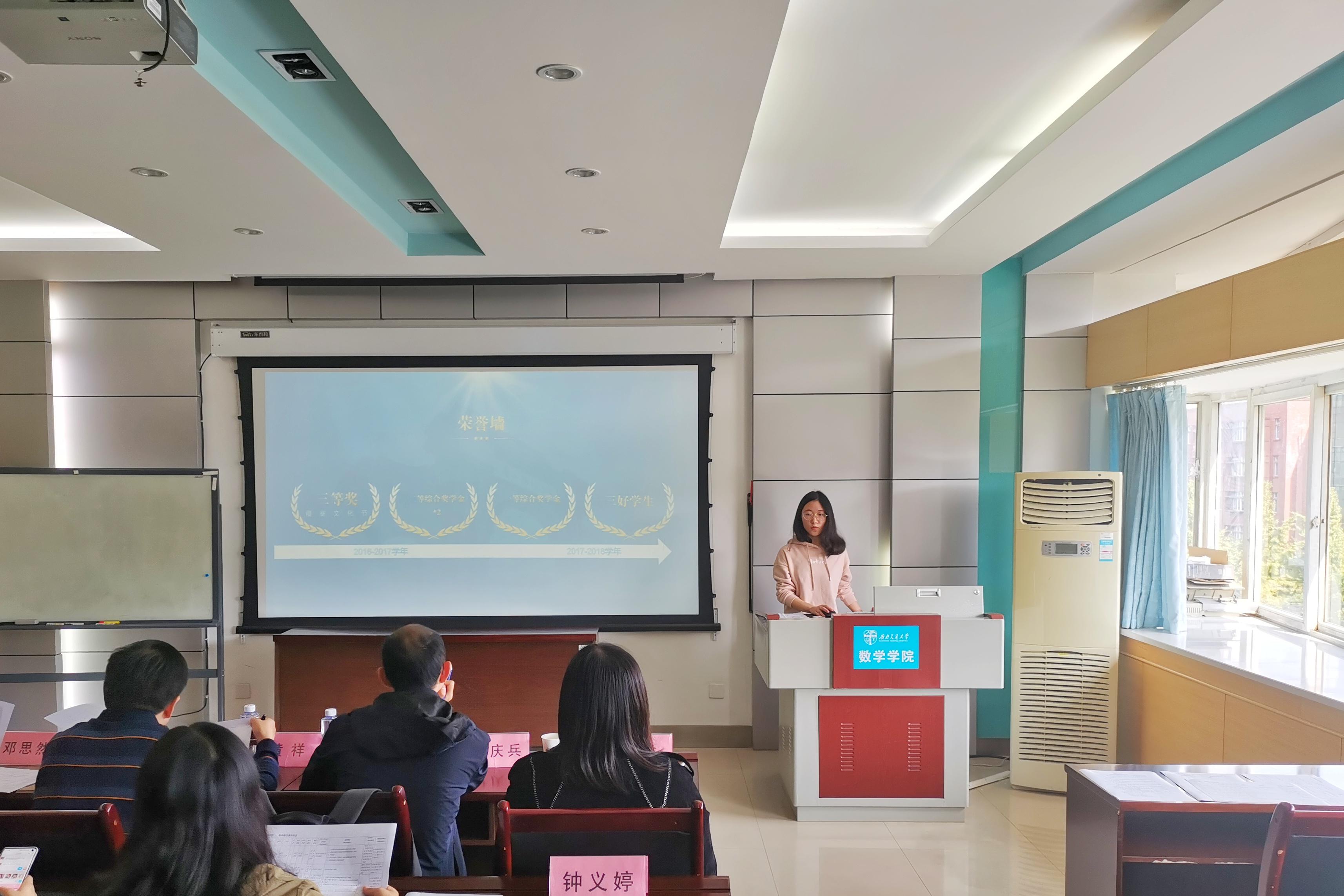 随后进行的是极客数学帮助学金答辩,答辩者介绍了自己的家庭经济情况,也展示了自己在学校取得的优异成绩,同时表达了自己在日后继续奋发向上的决心。