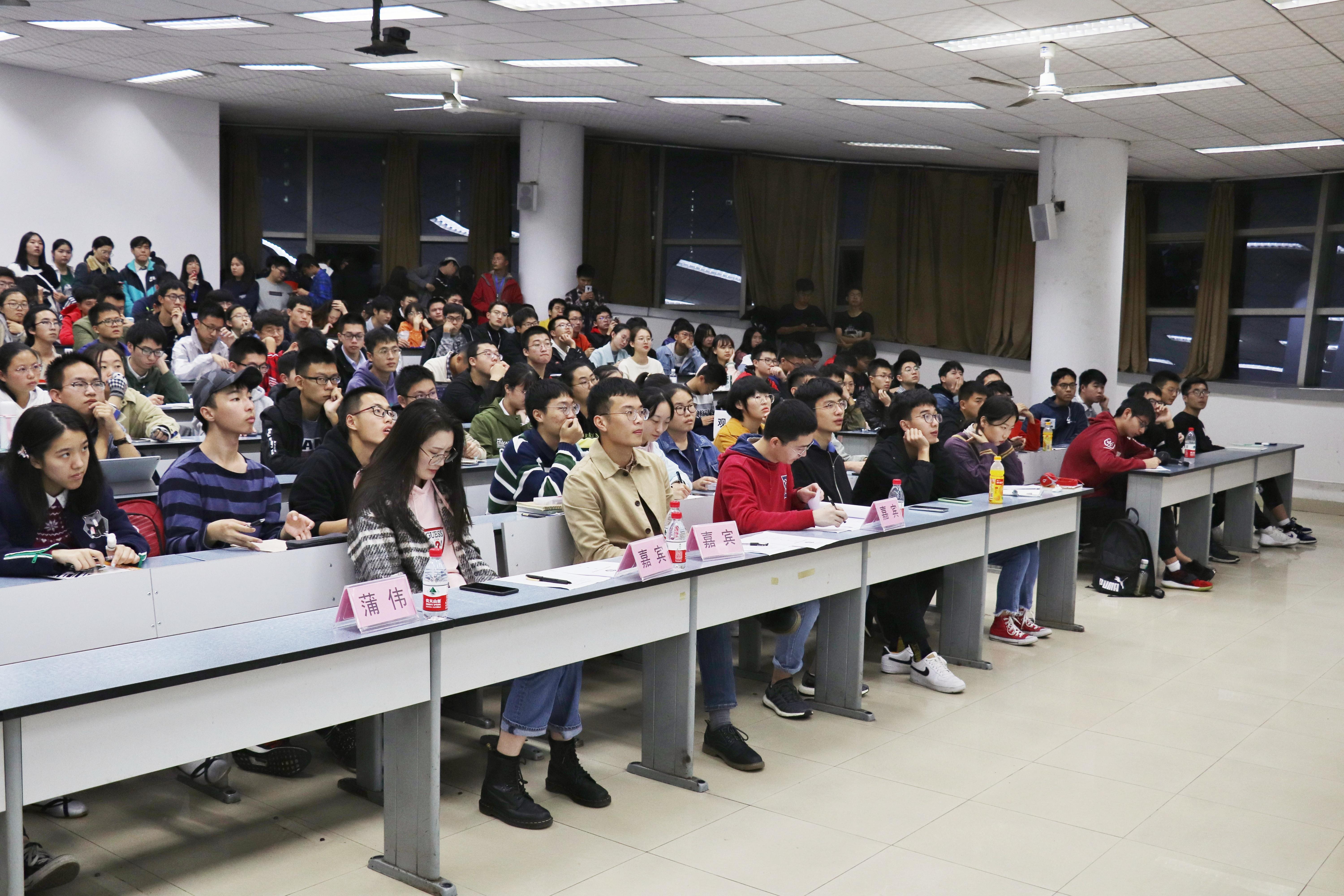 主持人简短的介绍后蒲伟老师便开始了讲座。蒲伟老师首先向同学们介绍了数学建模竞赛的来源以及近年来的变化,列举出近三年来的七道题目予以例证。并强调竞赛题目中有70%左右为优化、数据等相关问题。随后以2019年全国数学建模竞赛C题——机场出租车问题为例说明不可使用纯粹的统计手段处理数据;又以2018年A题——高温作业专用服装设计等问题为例强调了计算能力的至关重要性;以2018年B题——智能RGV的动态调度策略问题为例告知同学们今后的题目都将会与解决实际问题相关,而非单纯的数学问题。最后又为同学们讲解了美国、瑞典两国各一道题目,拓宽思路,开阔视野。