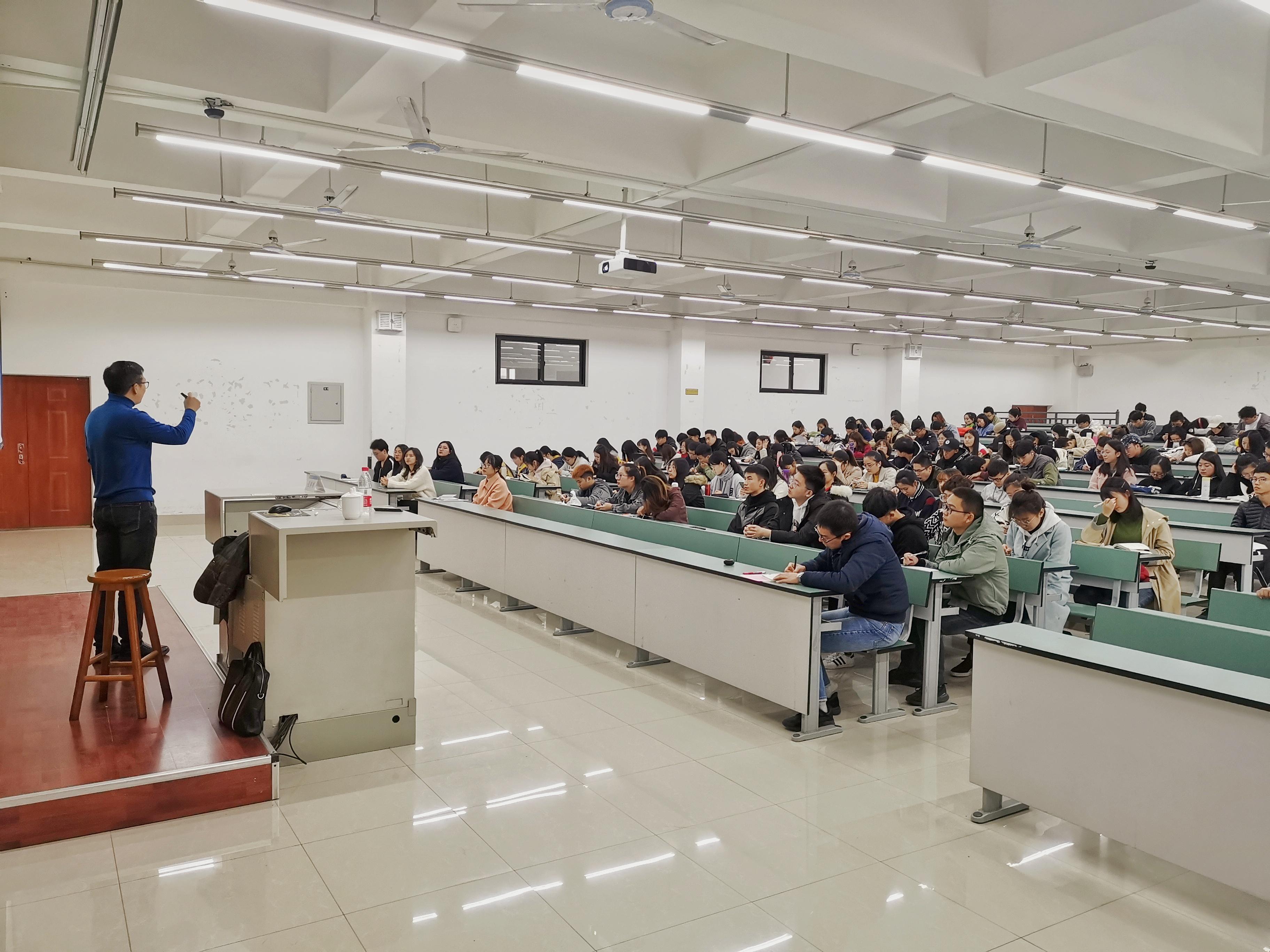 首先,孔祥彬老师向学生们提问“学习是为了什么”,各学院的同学代表分别从探寻自我,开启未来,贡献国家等方面发表了自己的观点。孔老师先点评完同学们的回答,然后教导大家,大学的学习实质可以归为专业知识技能,可迁移技能等的学习。接着,他现身说法,向同学们讲述了他曾经因一个偶然的契机获得启发,最终创建成都高校秘书协会的实际事例。以此鼓励同学们要多参与学生活动,多留心观察和思考,提升自我能力。最后,孔老师结合自我教学工作经验向同学们介绍了几种实用的学习方法。一是群体从游式学习:要与优秀者为伍。孔祥彬老师以自身的学生工作为例,告诫同学们要学会向身边人学习,利用好资源。二是留白无用式学习法。孔老师提到切忌将自己的时间安排满当,要学会给自己留白,留白出时间用于思考,规划。