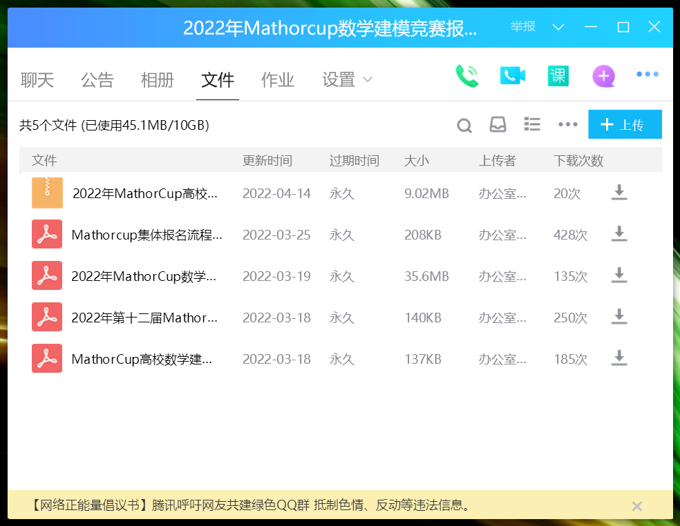 4月14日,MathorCup高校数学建模挑战赛开始,该竞赛是由中国优选法统筹法与经济数学研究会主办的面向全日制普通高等院校在校学生的学科竞赛活动。赛题、模板等各文件发布后,数学建模协会第一时间将各竞赛文件发布在各媒体平台以便同学们可以第一时间获得赛题信息。