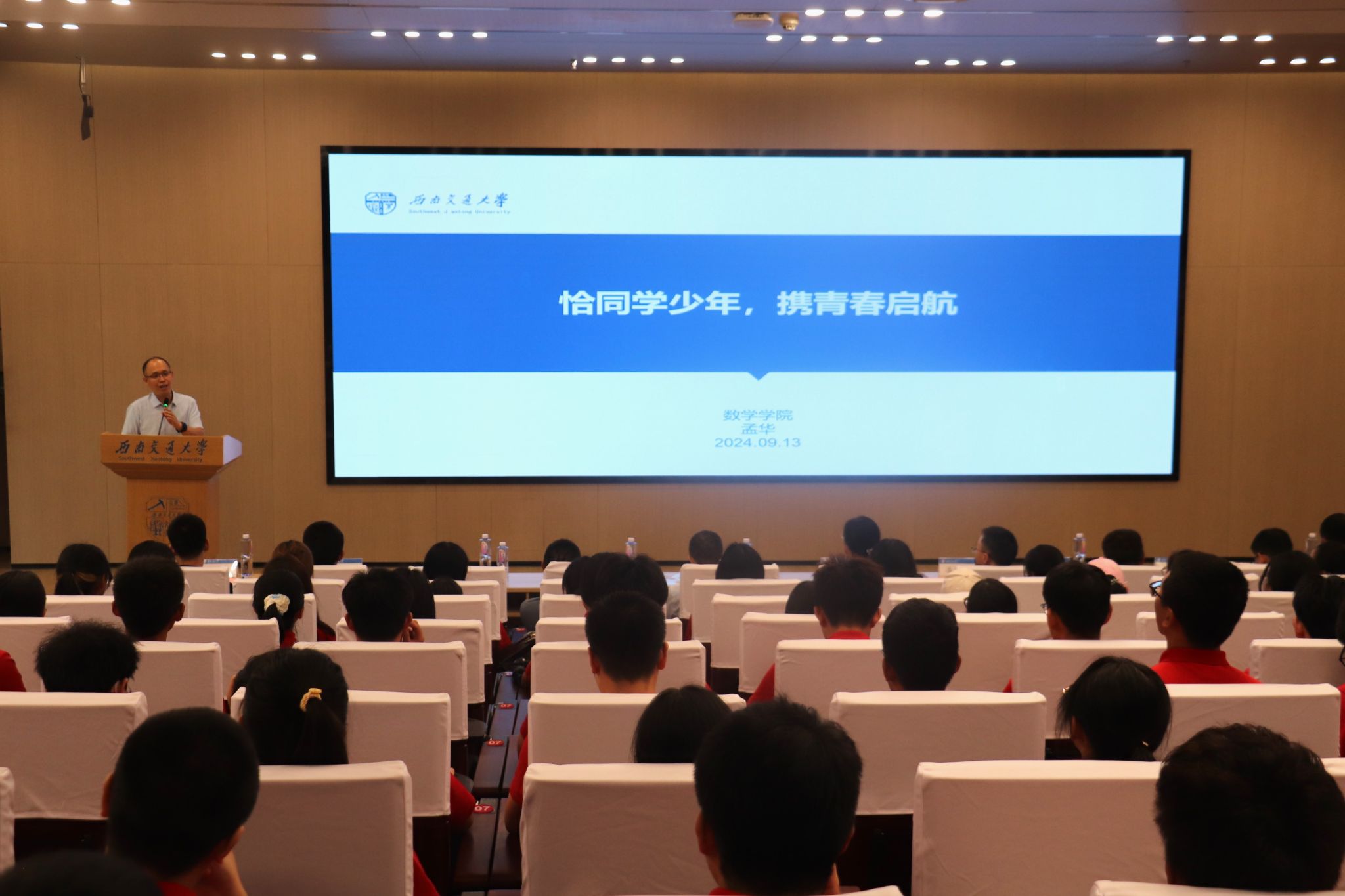 9月13日下午2时30分,2138cc太阳集团2024级学生开学典礼在犀浦校区图书馆二号报告厅隆重举行。出席会议的嘉宾有2138cc太阳集团党委书记徐革教授、院长杨晗教授、副院长潘小东副教授、副院长王璐教授、副院长李志辉副教授、信息与计算科学系杨洋教授、信息与计算科学系主任孟华副教授、统计系黄磊副教授、数学2024-01班班导师崔宁伟、数学2024-01班班导师吴贯锋、统计2024-02班班导师何莎、统计2024-02班班导师程凤、大数据2024-01班班导师何星星、大数据2024-01班班导师洪思奥、大数据2024-02班班导师陈章友、大数据2024-02班班导师丁猛、团委书记张素子及全体学工组老师。会议由2138cc太阳集团党委副书记黄祥主持。