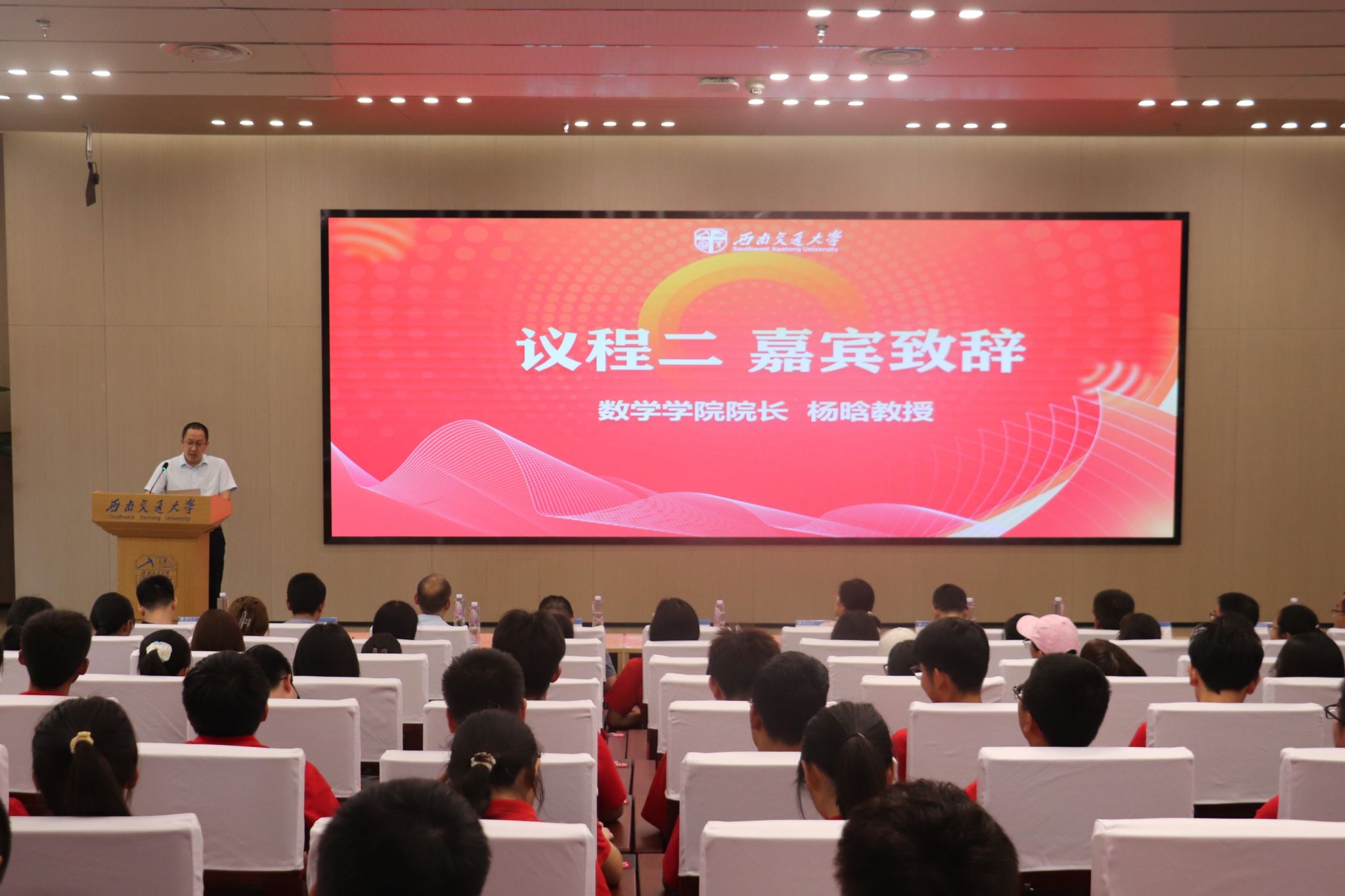 议程第二项,2138cc太阳集团院长杨晗教授致辞,他对2024级新生的到来表示热烈欢迎。杨晗院长先向全体新生讲述了数学之美,数学之美在于严谨与精确、创新与发现,在数字化时代,数学以其独特的方式影响着世界的方方面面。他指出,我们要用数学的语言描绘世界,用数学的思维解决问题。随后,杨晗院长介绍了学院的基本情况,并向新生们提出了三点期望:一是学为人之道,在协同奋进中实鸿鹄之志;二是学为事之道,在躬身实践中练成事之能;三是悟为学之道,在笃学不怠中点智慧之灯。“天行健,君子以自强不息”,杨晗院长鼓励同学们以扎实的行动提前布局,以超前的意识迎战未来,在数学的星空下,勇敢飞翔,不断超越,最终成为璀璨的星辰。