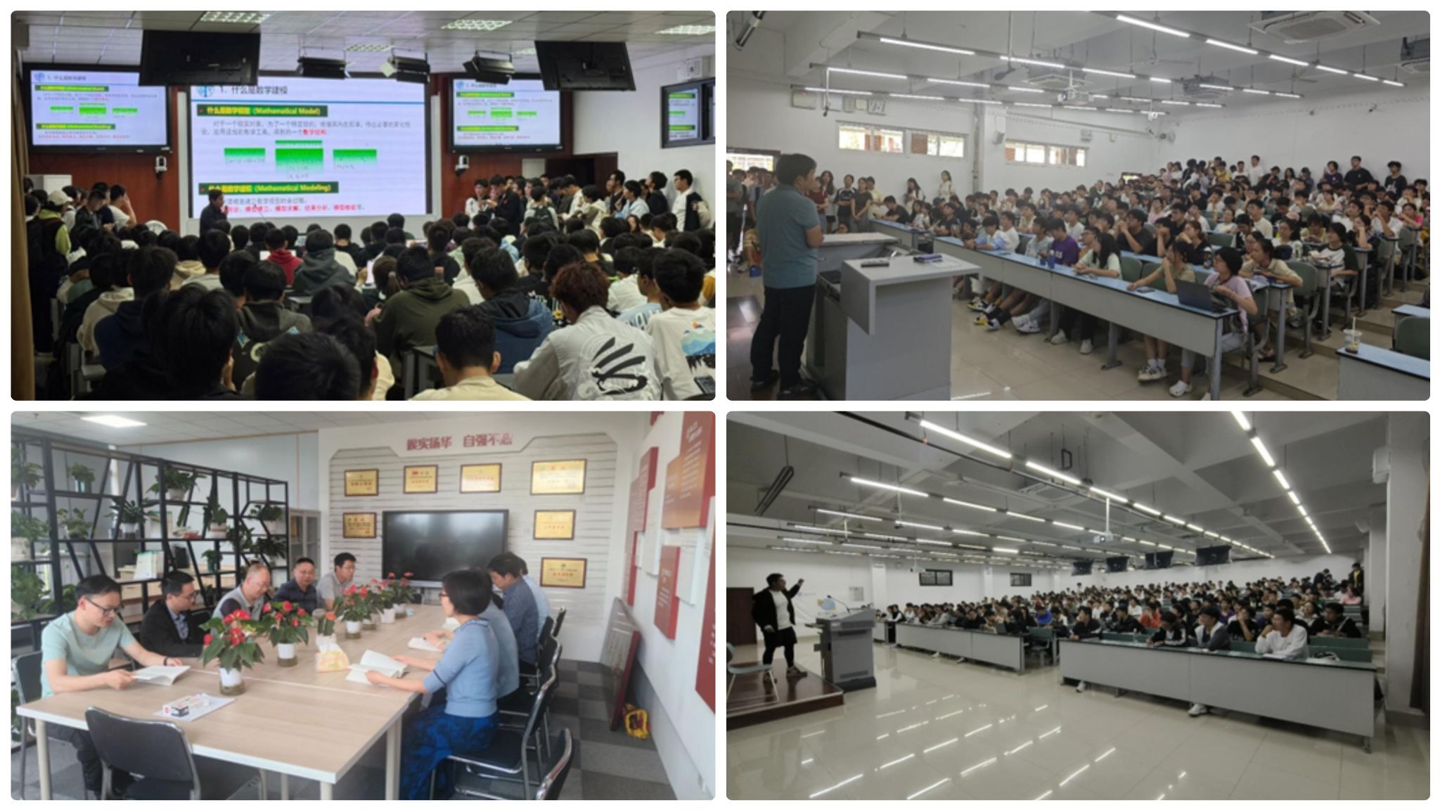 学科竞赛是创新型人才培养的驱动力,是检验教学成果、锻炼提高学生创新能力的重要环节和有力抓手。学校秉持“以赛促学、以赛促教、以赛促创”的教育理念,着力培养学生的科研能力与创新精神。自全国大学生数学建模大赛选拔以来,在学校的大力支持下,由教务处统筹组织、提前布局,举办“学科竞赛讲座周”“数学建模系列专题讲座”等活动,广泛宣传动员,细化组织流程。其中2138cc太阳集团成立了由杨晗教授领衔的指导教师团队,深入实施竞赛指导工作,严格按照竞赛标准,扎实推进各项准备工作,为参赛队伍提供了强有力的支持与保障。从3月份“新秀杯”的初步遴选开始,指导老师与222支参赛队伍、666名学子并肩作战,常态化开展专题培训、暑假期间进行实战训练、后期对国赛队伍一对一指导等一系列工作,有效拓宽了学生的知识视野和完善了学生的知识体系,全面提高了学生的数学应用能力、团队协作能力以及解决实际问题的能力。