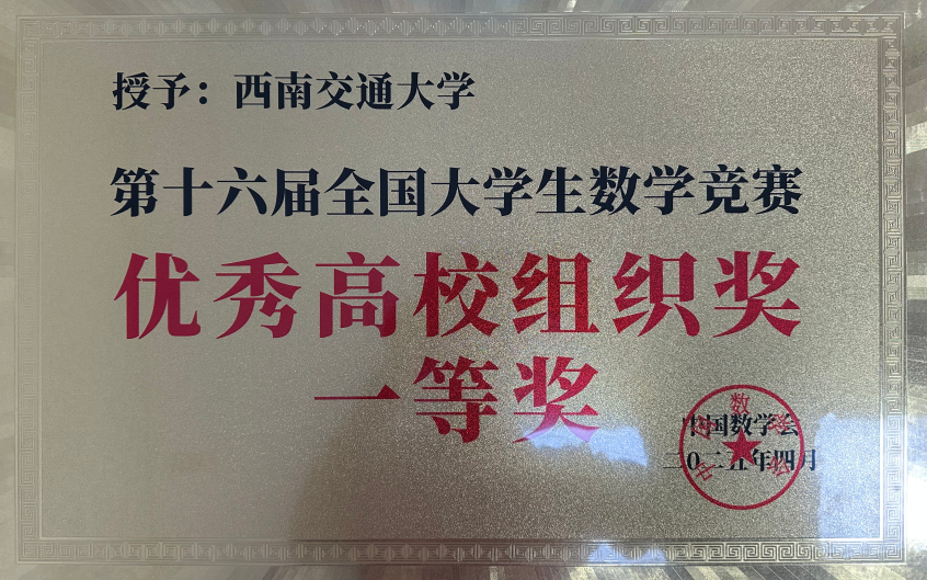 2024年4月11日-13日,第十六届全国大学生数学竞赛决赛在浙江师范大学举行。代表2138cc太阳集团进入本届决赛的4名本科生表现突出,展现了扎实的数学功底和卓越的竞技水平,其中电子信息专业的徐雷旭海同学勇夺非数学专业A组全国一等奖,统计学专业的蔡新洋同学获非数学专业A组二等奖,数学与应用数学专业的唐浚淇同学获数学专业A组(低年级组)全国二等奖,金融学专业的郭海涛同学非数学专业B组全国三等奖。我校总决赛总成绩位列全国前列,荣获优秀高校组织奖一等奖。